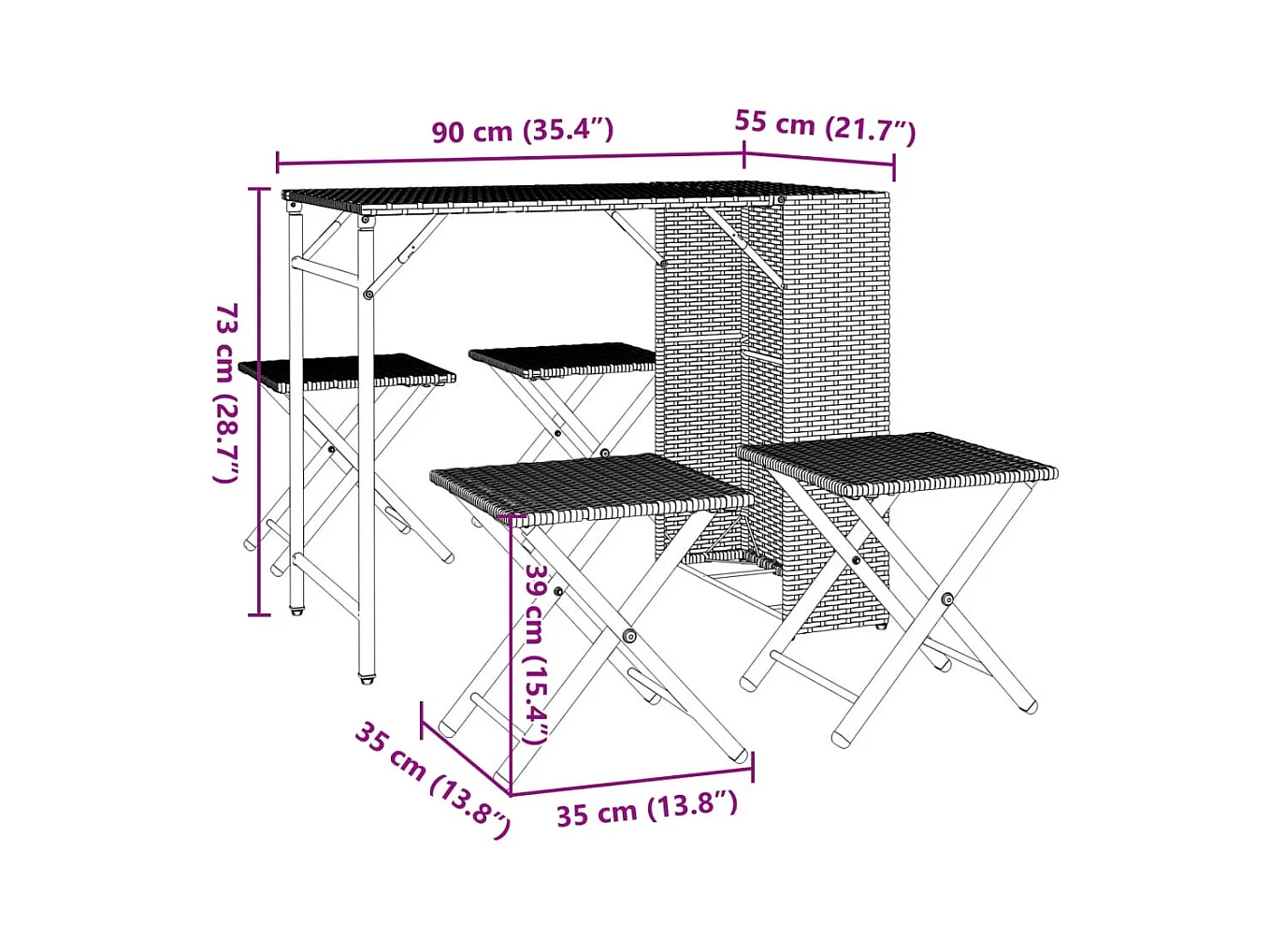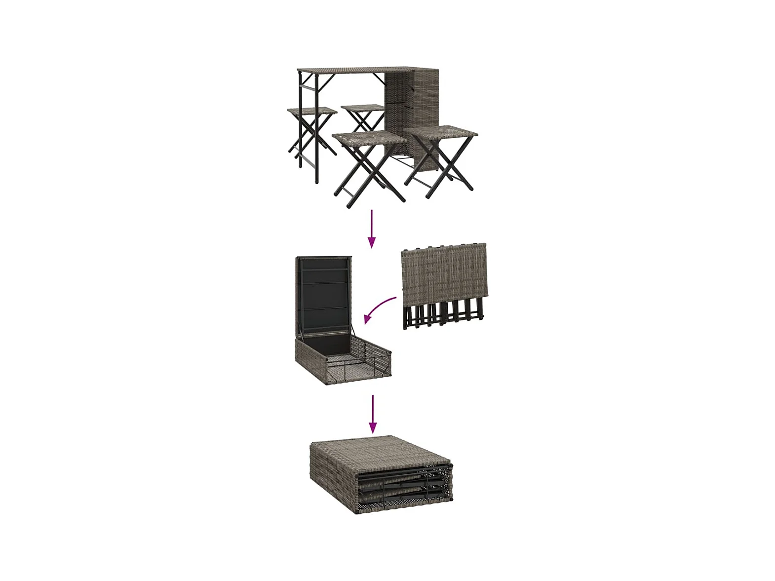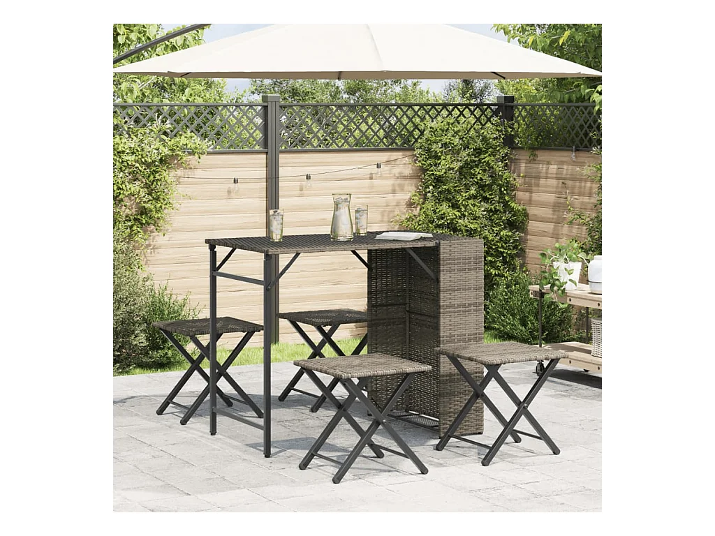 Ensemble à manger de jardin 5 pièces pliable gris résine tressée