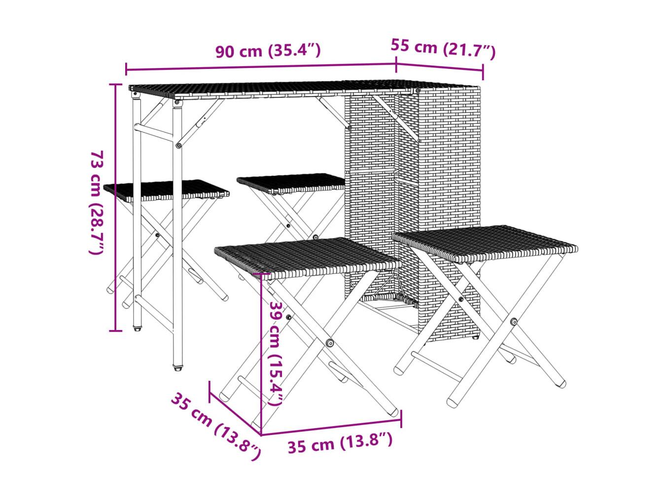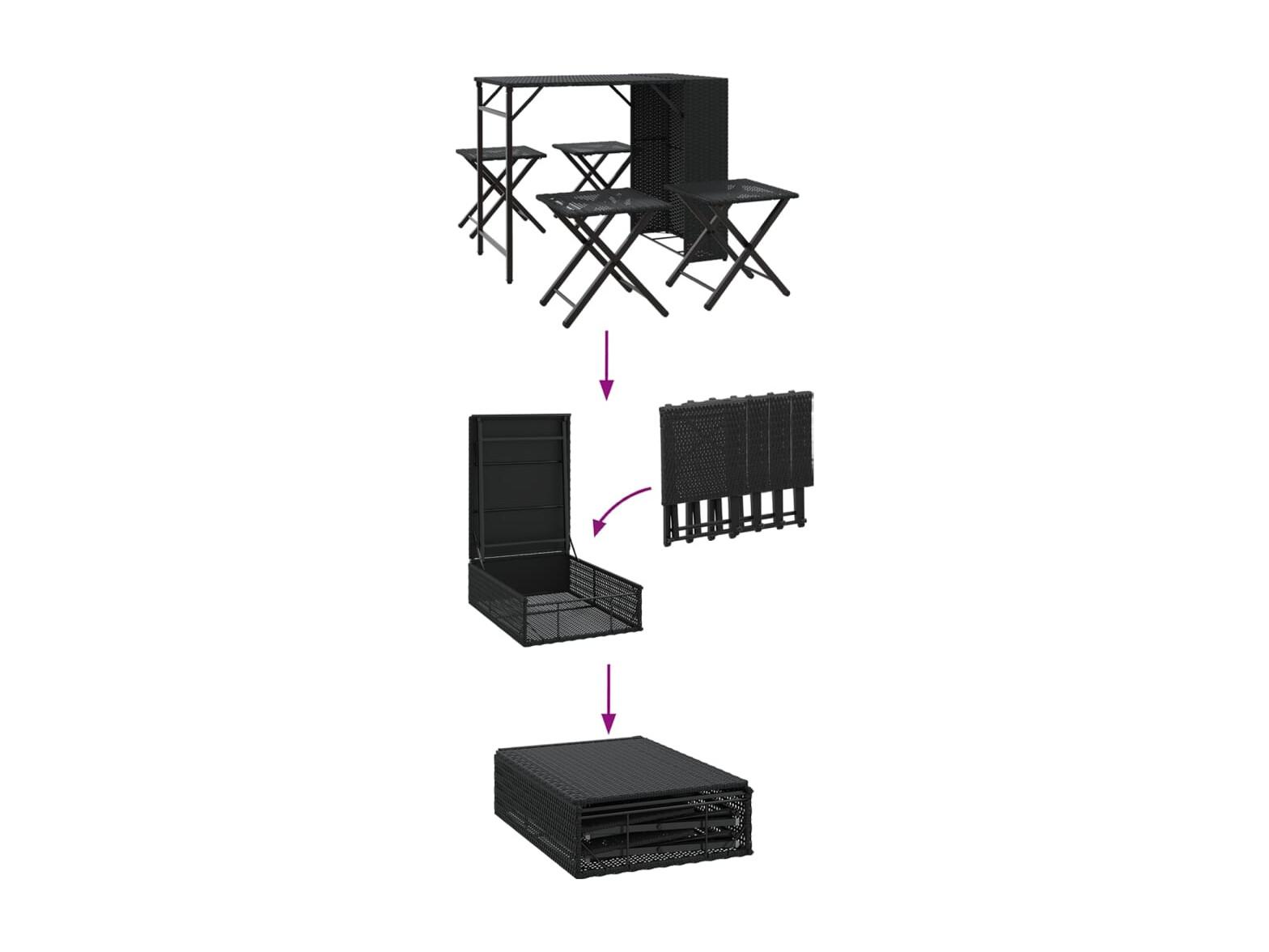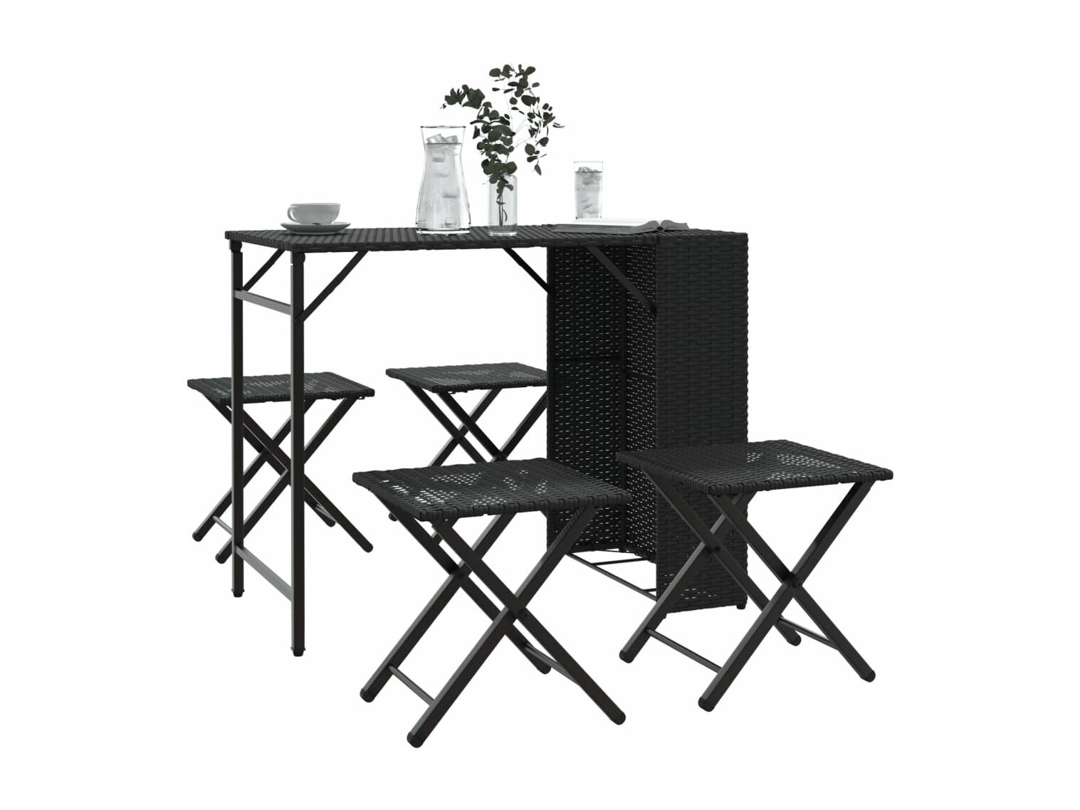 Ensemble à manger de jardin 5 pièces pliable noir résine tressée