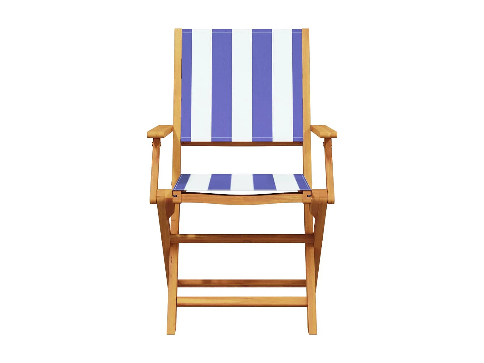 Ensemble à manger de jardin 7 pcs bleu blanc tissu bois massif