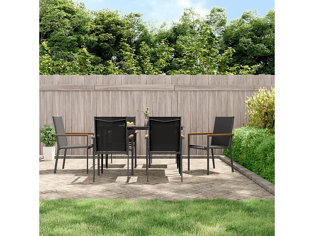 Ensemble à manger de jardin 7 pcs noir textilène et acier