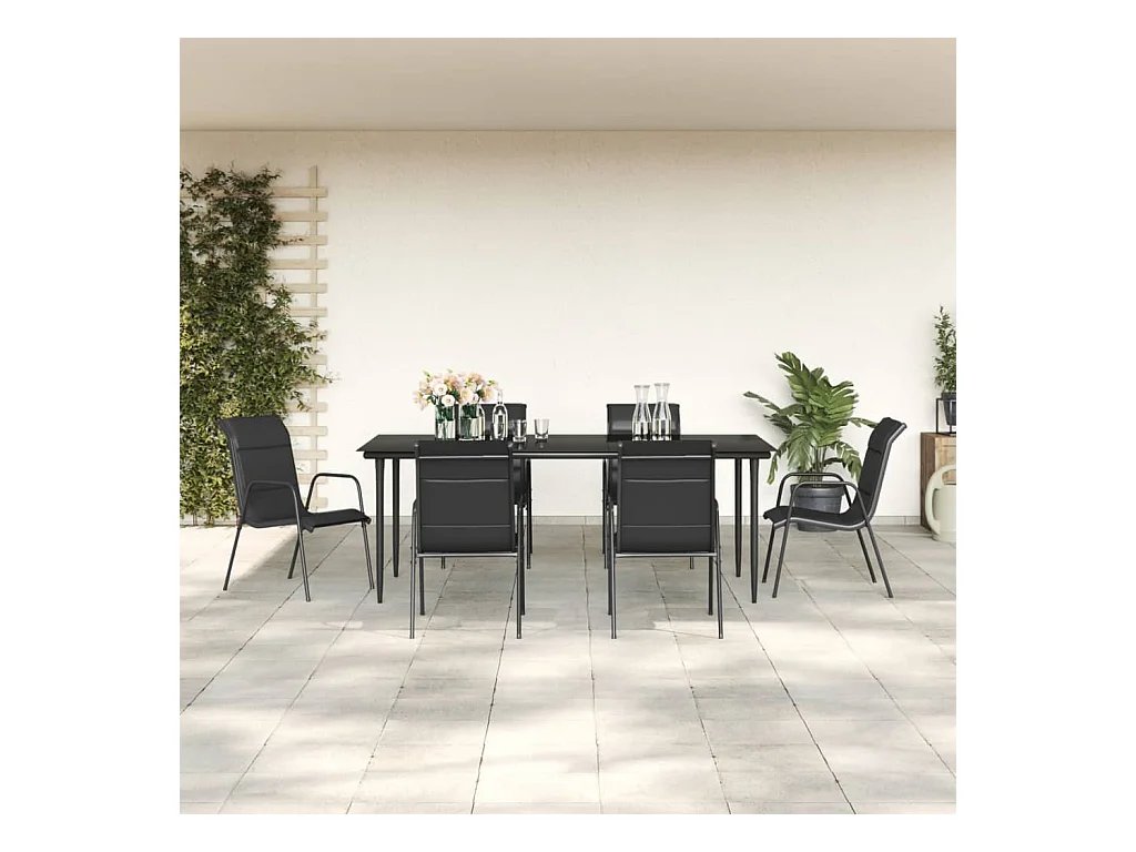 Ensemble à manger de jardin 7 pcs noir textilène et acier BE85540