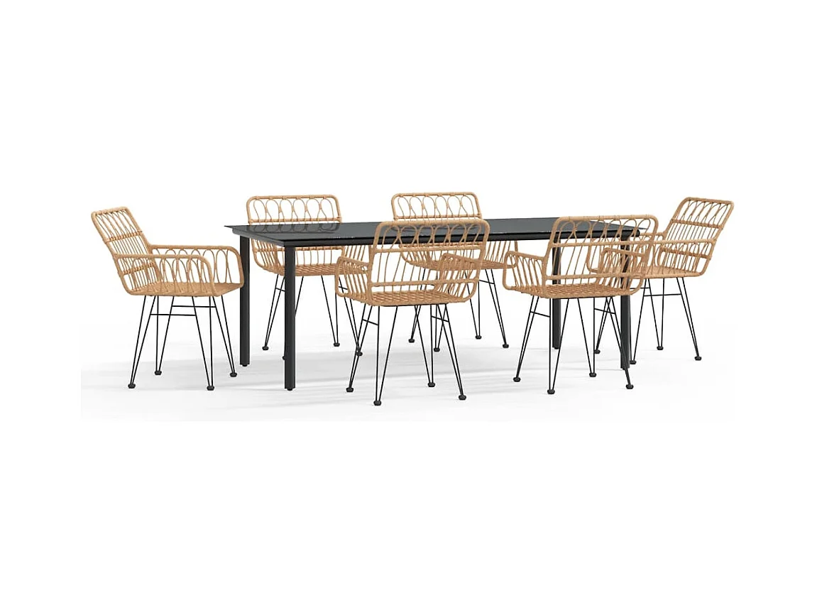 Ensemble à manger de jardin 7 pcs Résine tressée