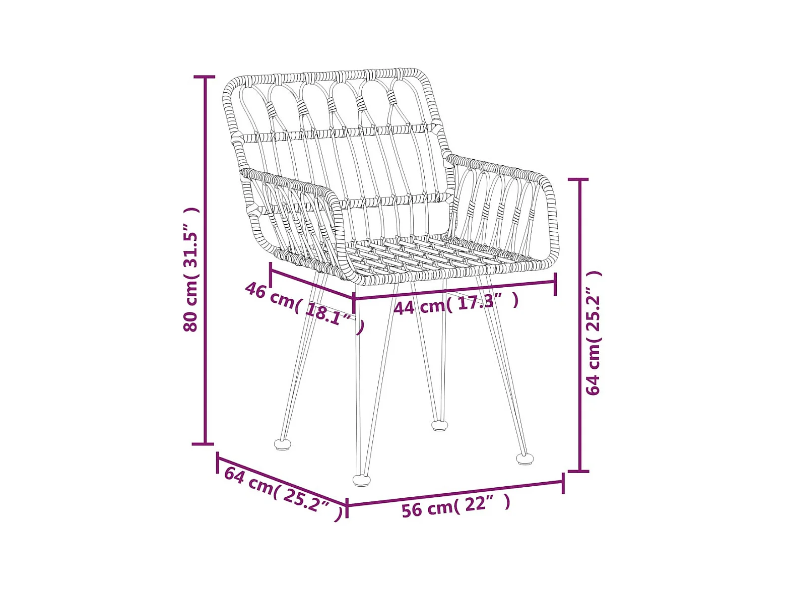 Ensemble à manger de jardin 5pcs Résine tressée Marron