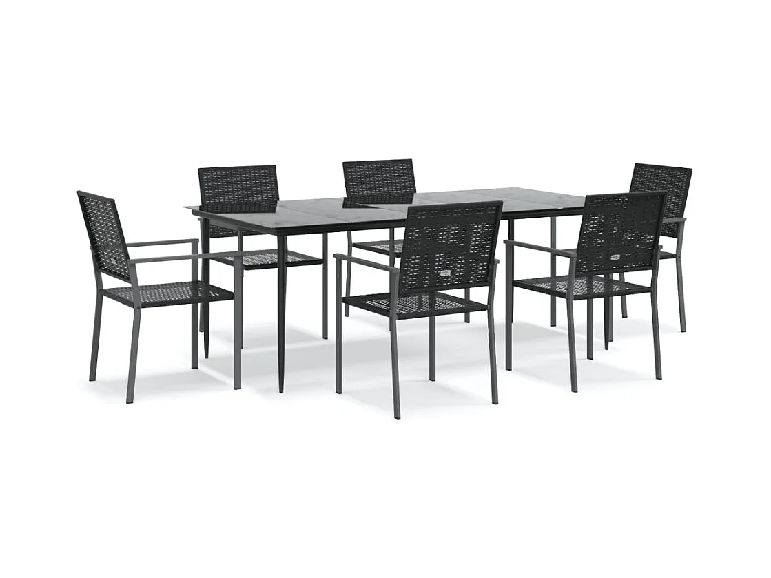 Ensemble de salle à manger de jardin 7 pièces Noir