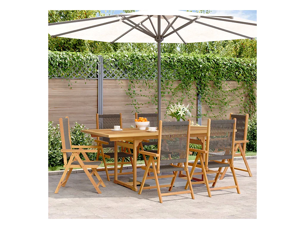 Ensemble à Manger de jardin 7pcs gris polypropylène bois massif