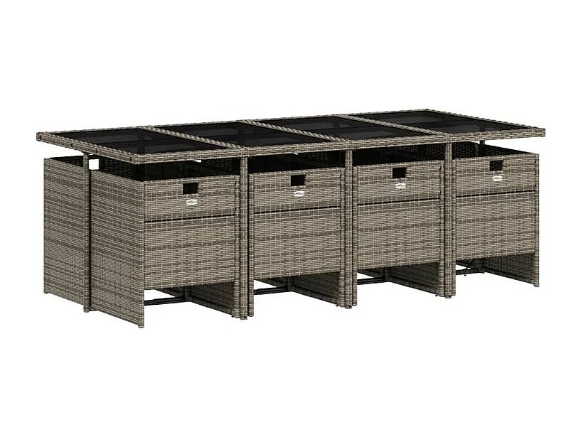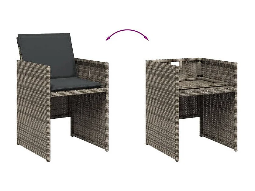 Ensemble à manger de jardin 9 pcs coussins gris résine tressée