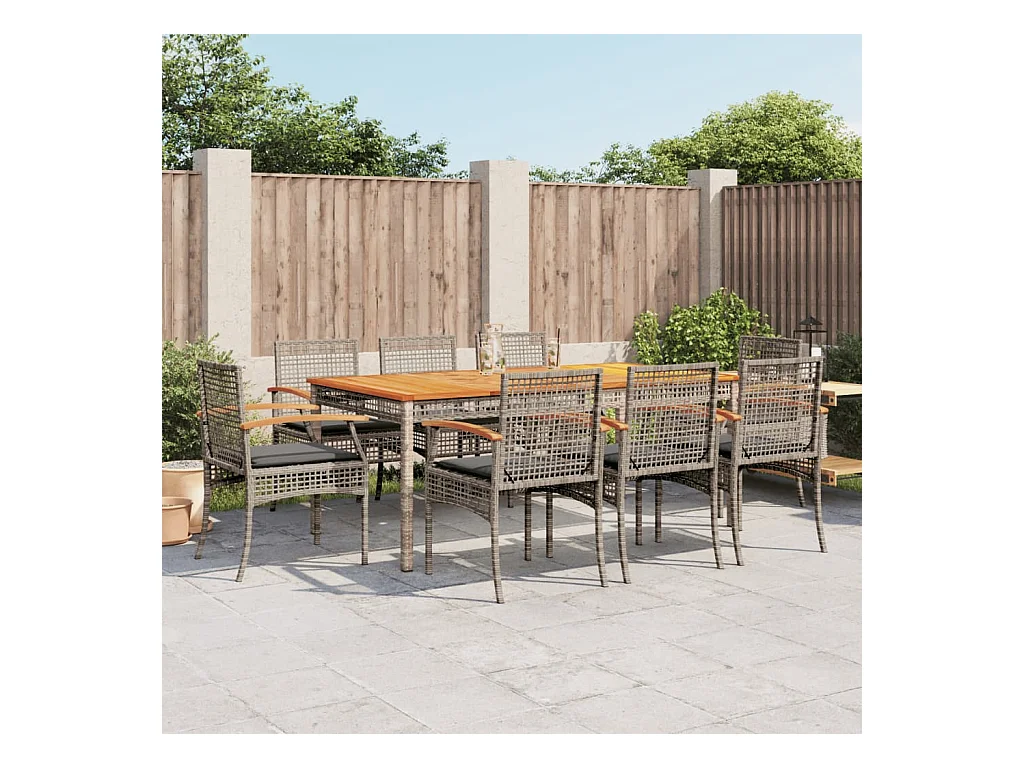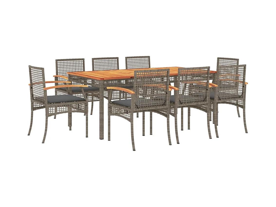 Ensemble à manger de jardin 9 pcs coussins gris résine tressée