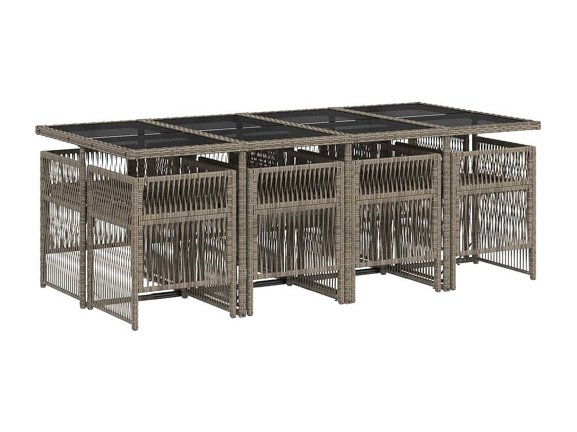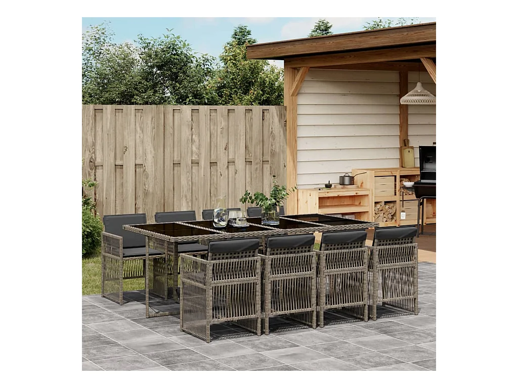 Ensemble à manger de jardin 9 pcs coussins gris résine tressée