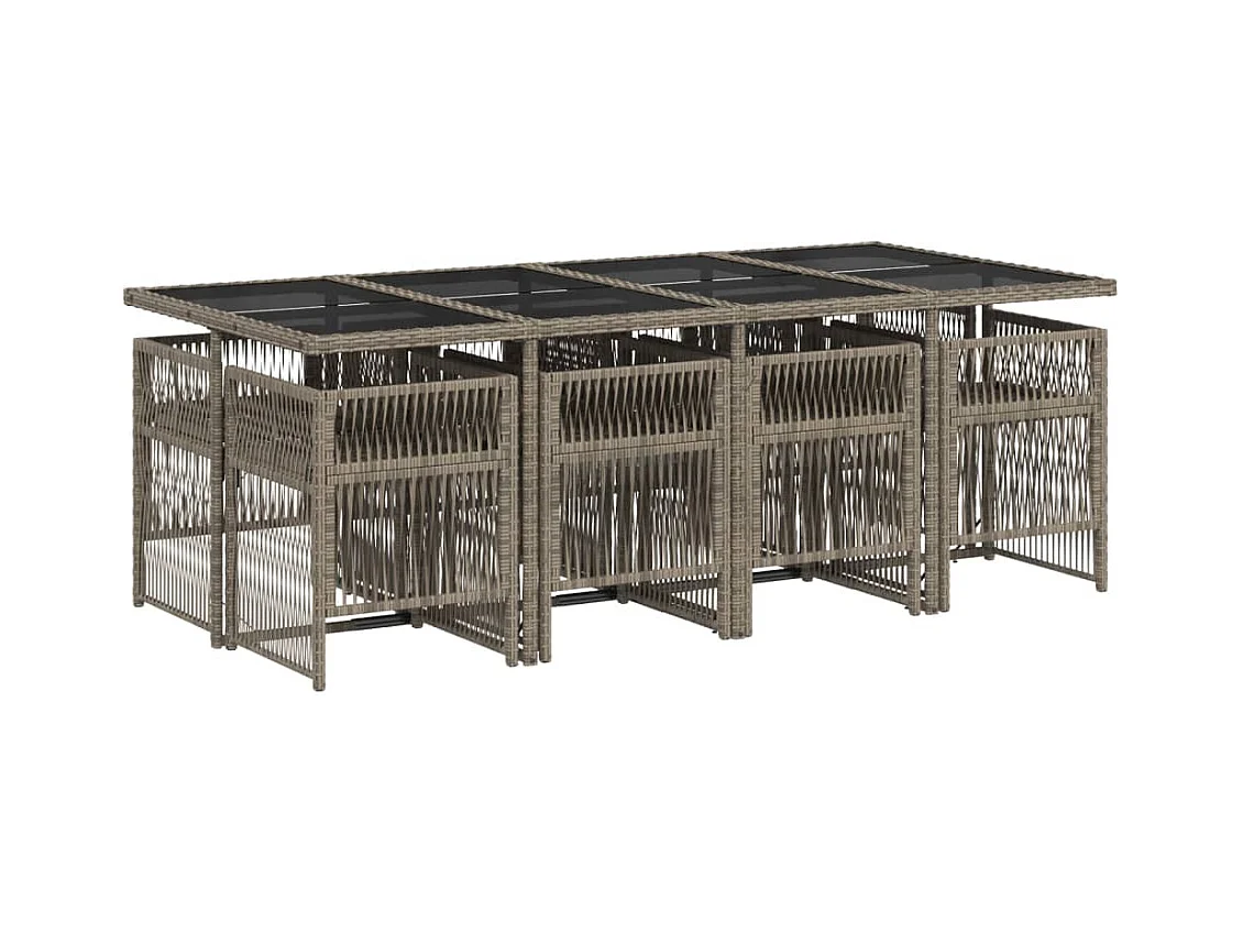 Ensemble à manger de jardin coussins 13 pcs gris résine tressée