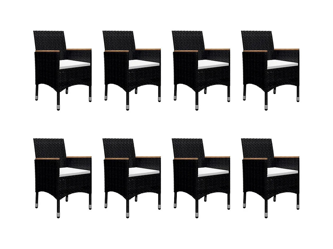 Ensemble à manger de jardin coussins 9pcs Résine tressée Noir
