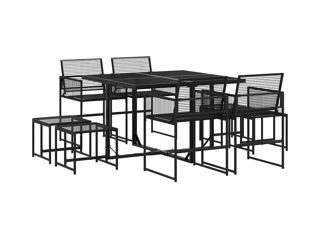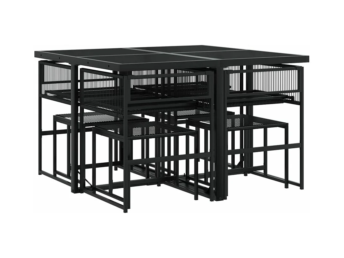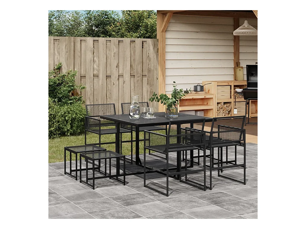 Ensemble à manger de jardin 9pcs coussins noir résine tressée
