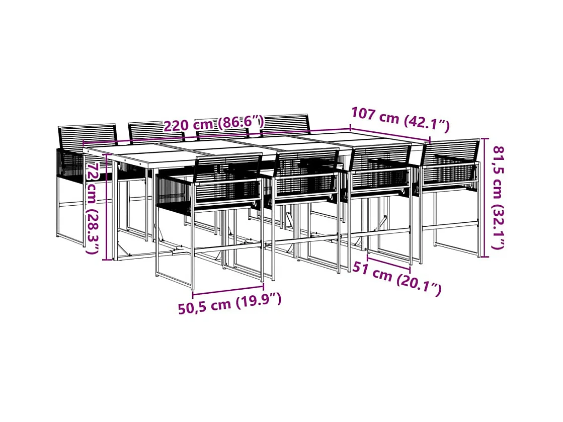Ensemble à manger de jardin 9pcs coussins noir résine tressée