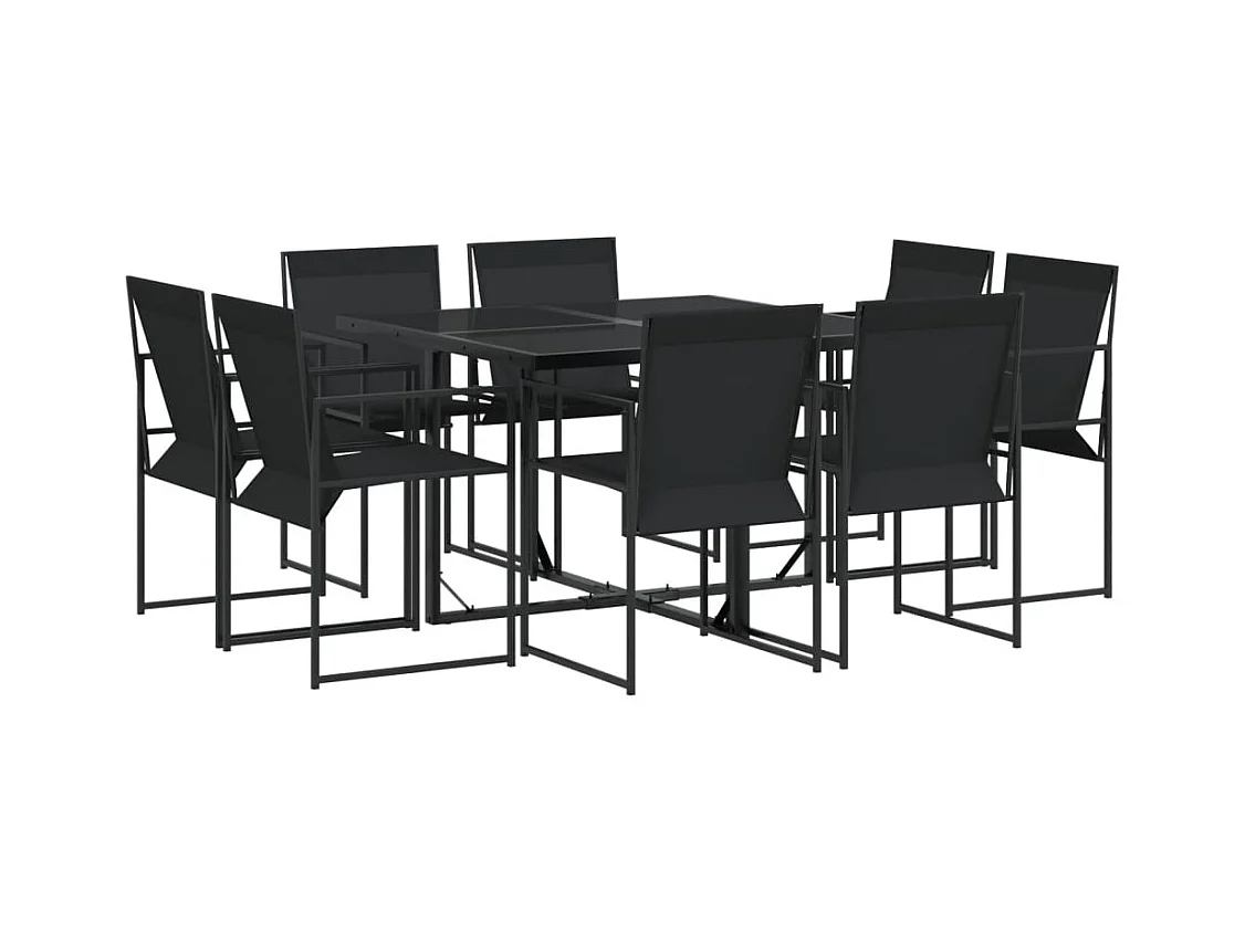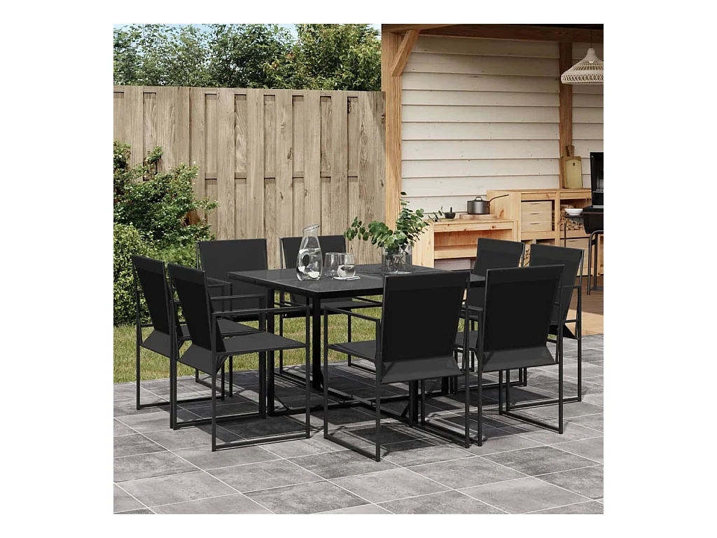 Ensemble à manger de jardin avec coussins 9 pcs noir textilène