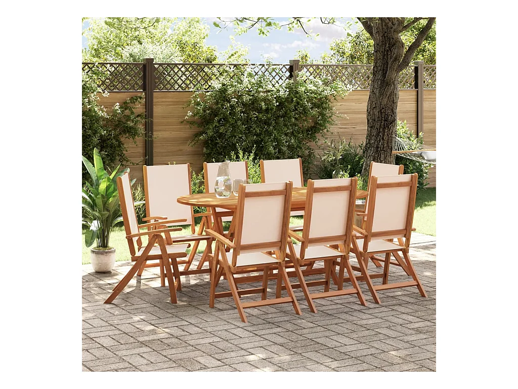 Ensemble à manger de jardin 9 pièces bois d'acacia solide textilène