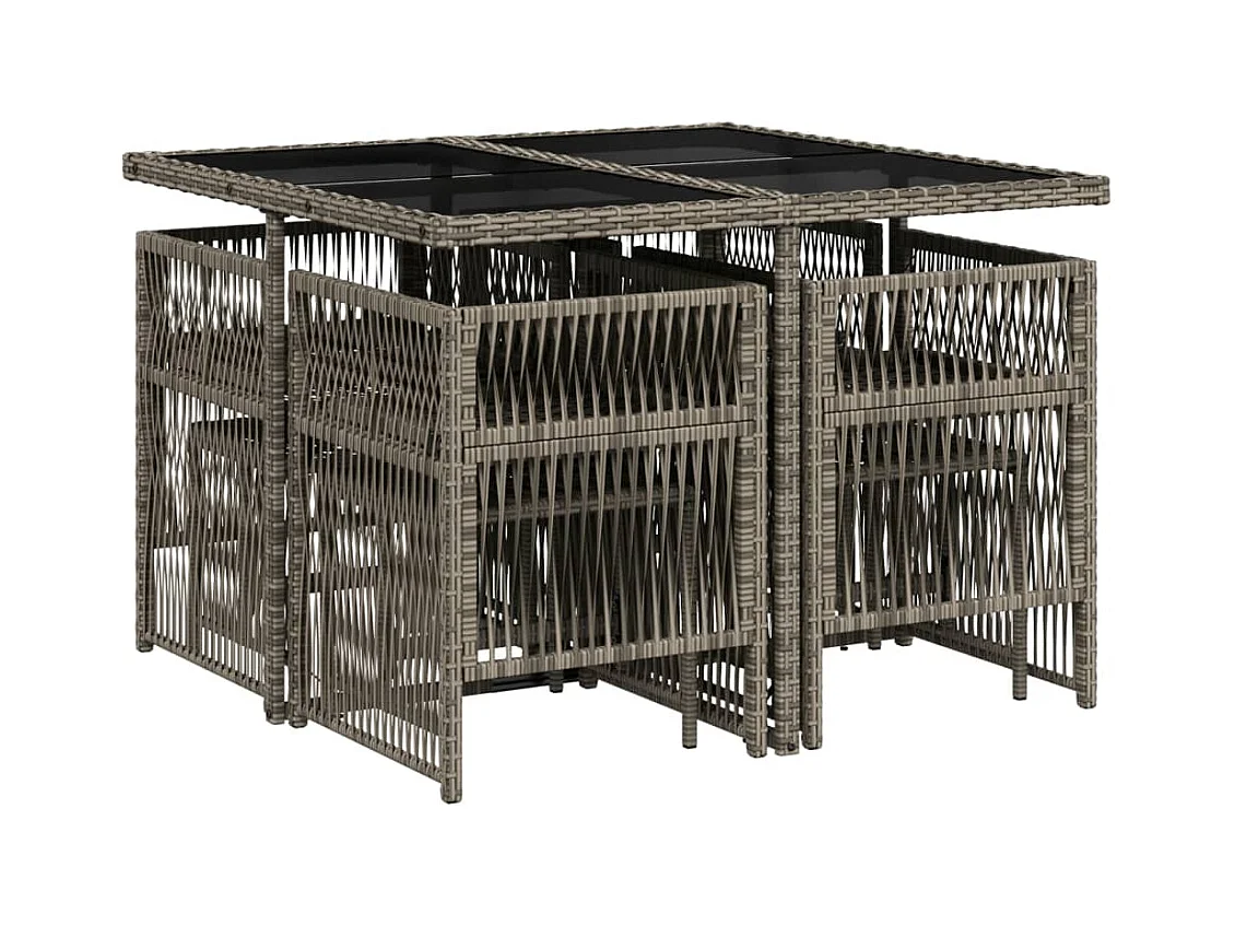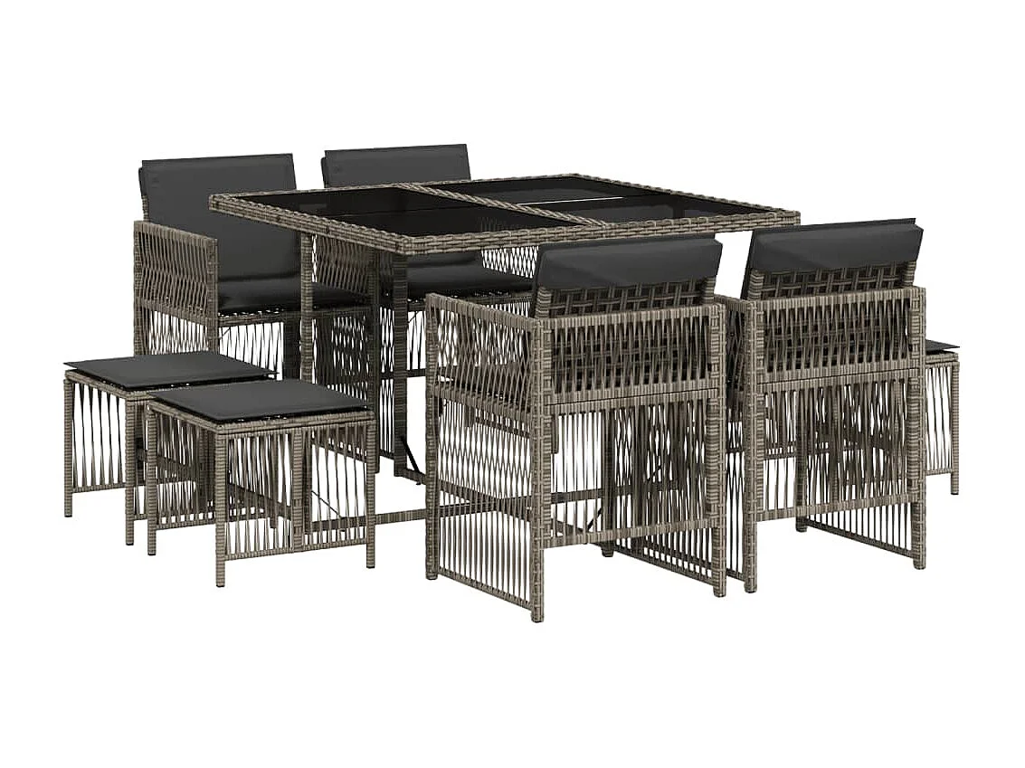 Ensemble à manger de jardin 9 pièces coussins gris résine tressée