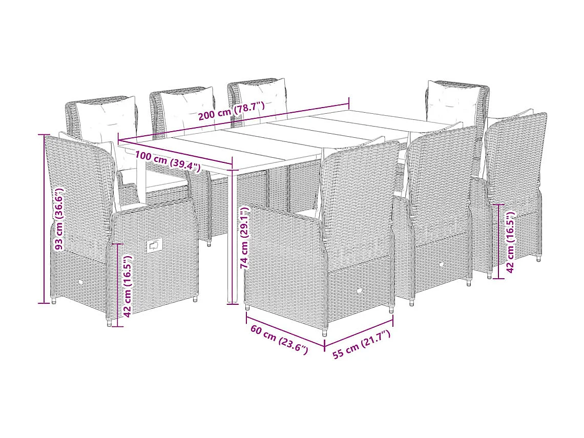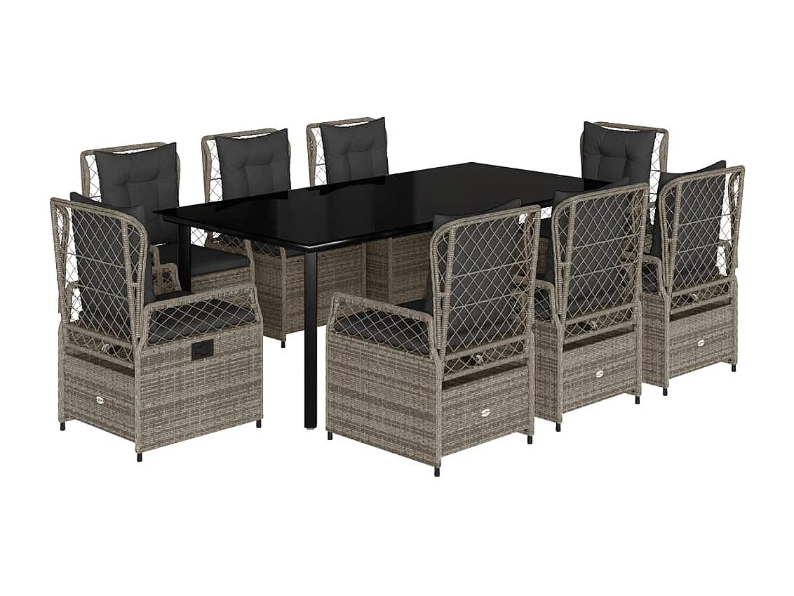 Ensemble à manger de jardin 9 pièces coussins gris résine tressée