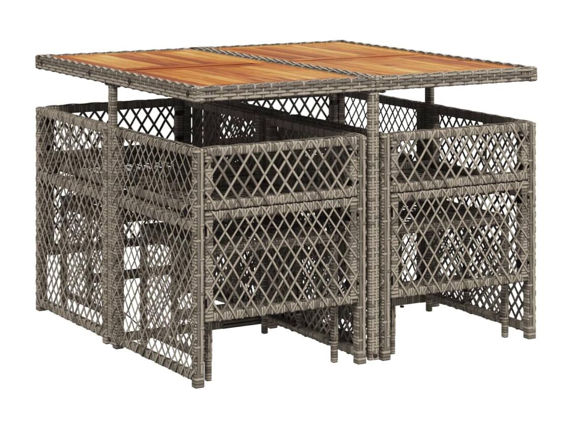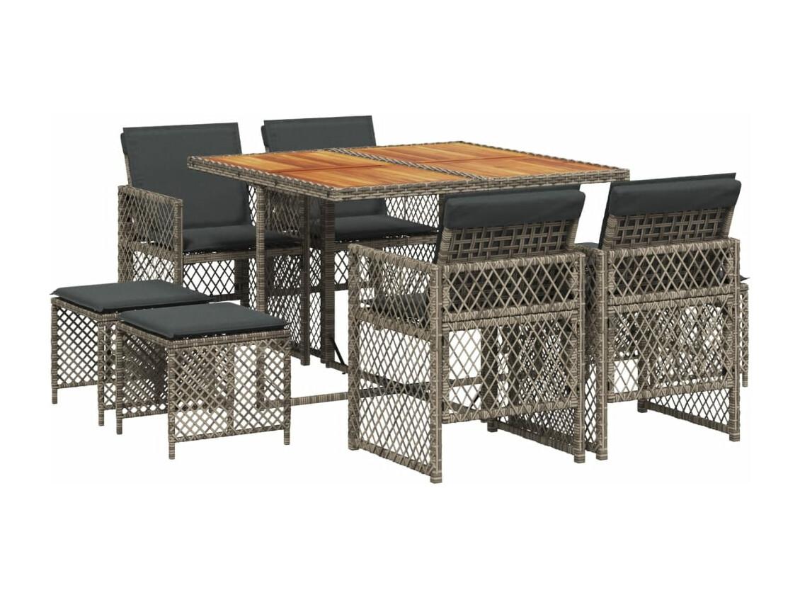 Ensemble à manger de jardin 9 pièces coussins gris résine tressée