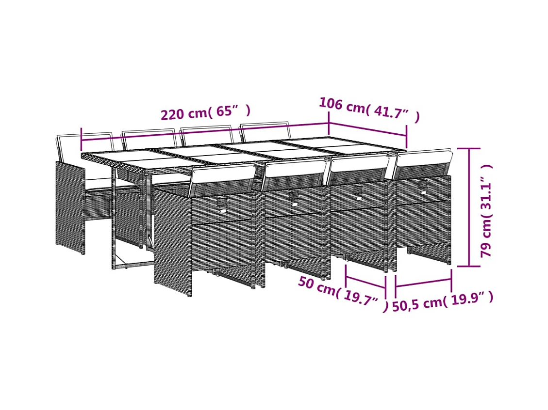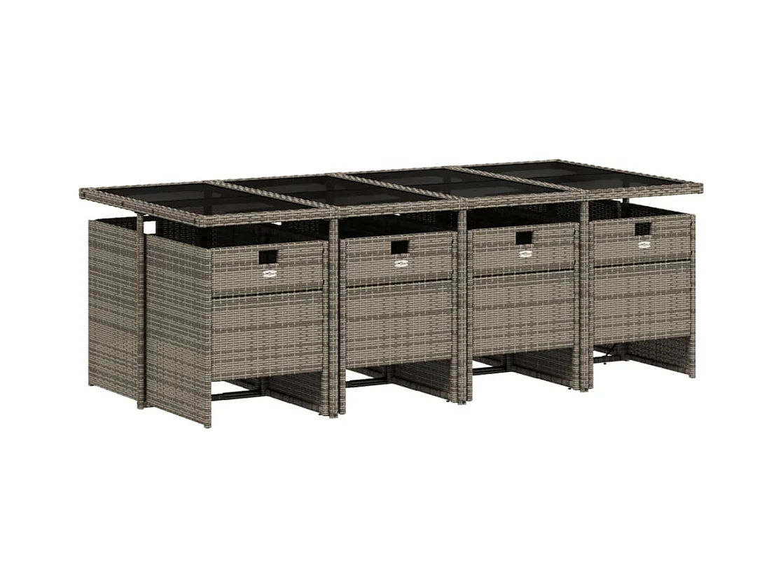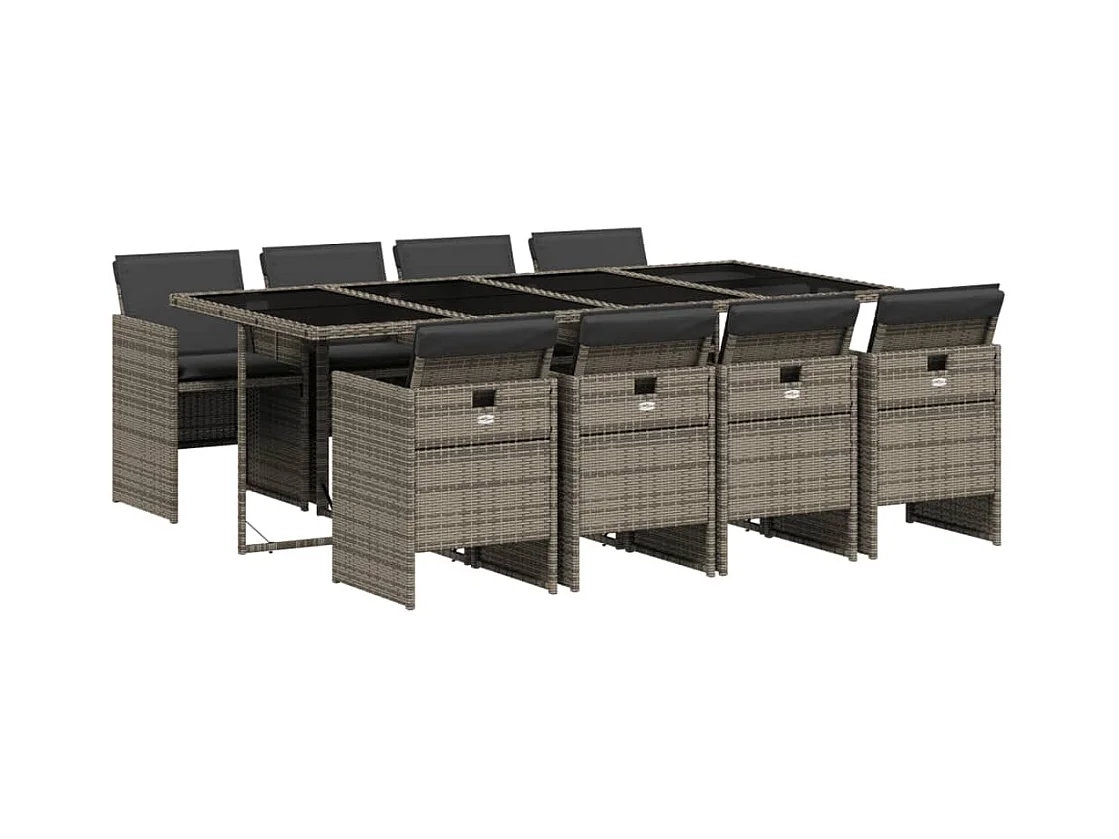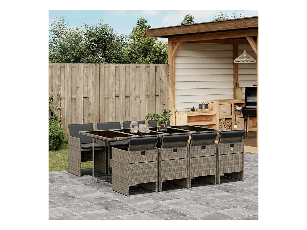 Ensemble à manger de jardin 9 pièces coussins gris résine tressée