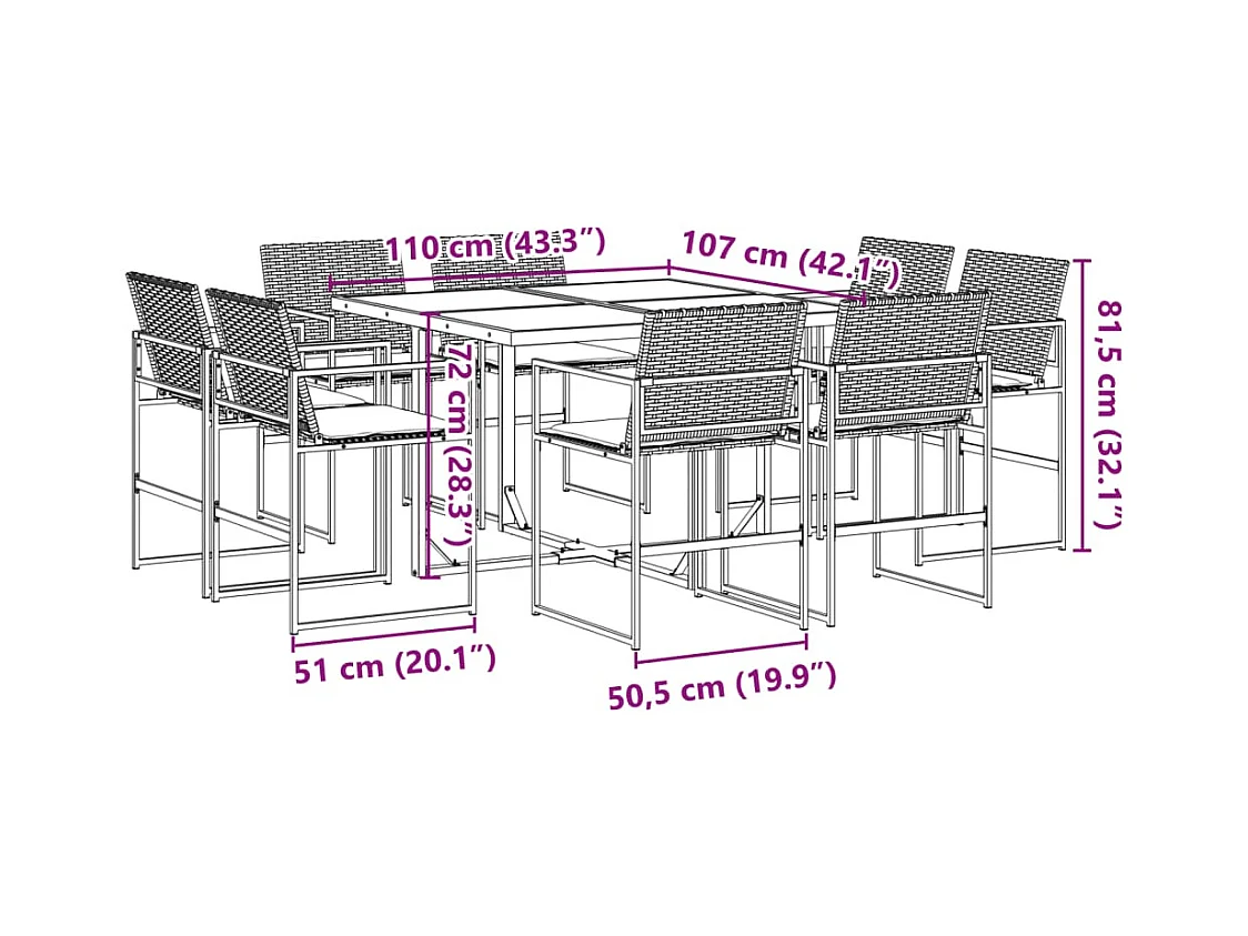 Ensemble à manger de jardin 9 pièces coussins noir résine tressée
