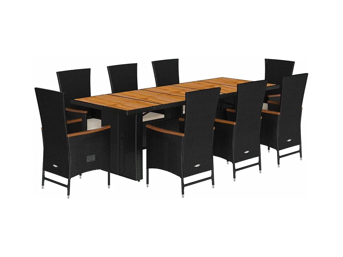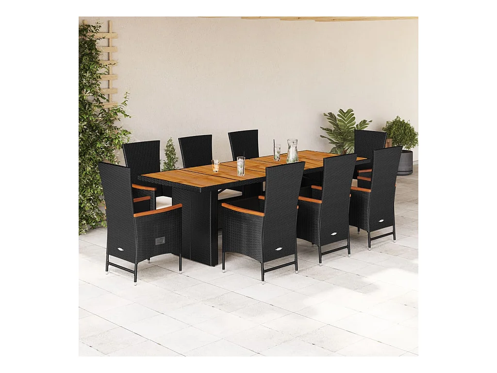 Ensemble à manger de jardin 9 pièces coussins noir résine tressée