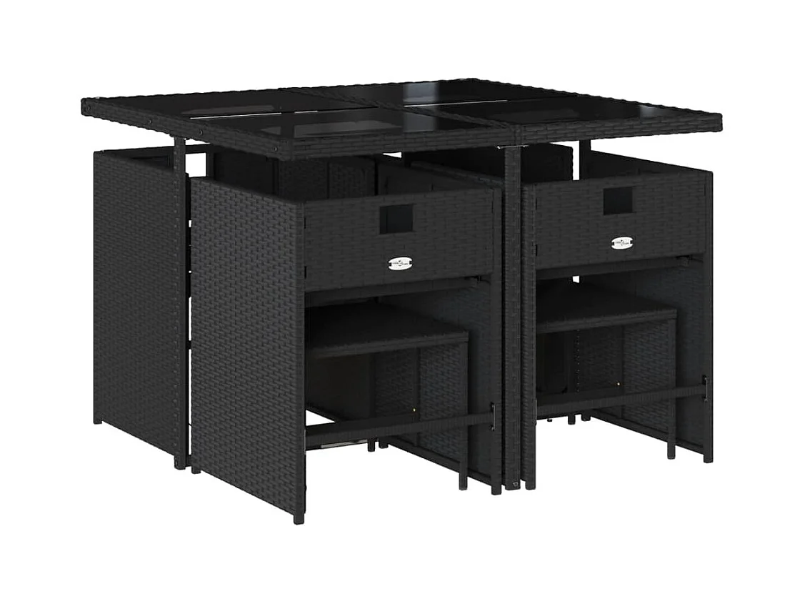 Ensemble à manger de jardin 9 pièces coussins noir résine tressée