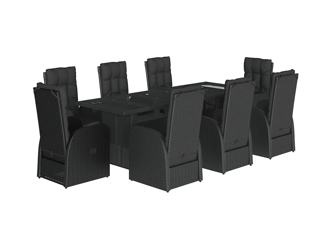 Ensemble à manger de jardin 9 pièces coussins noir résine tressée