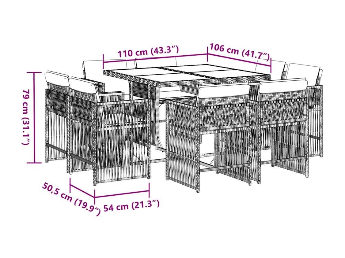 Ensemble à manger de jardin 9 pièces coussins noir résine tressée