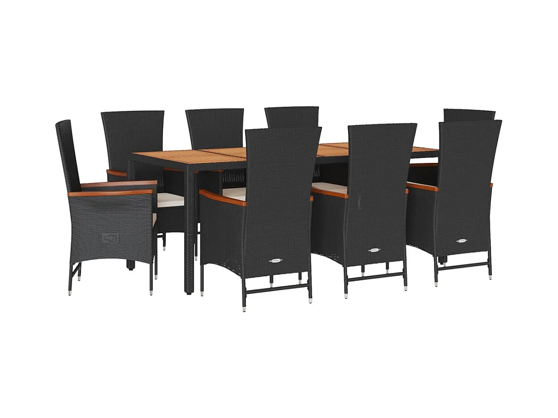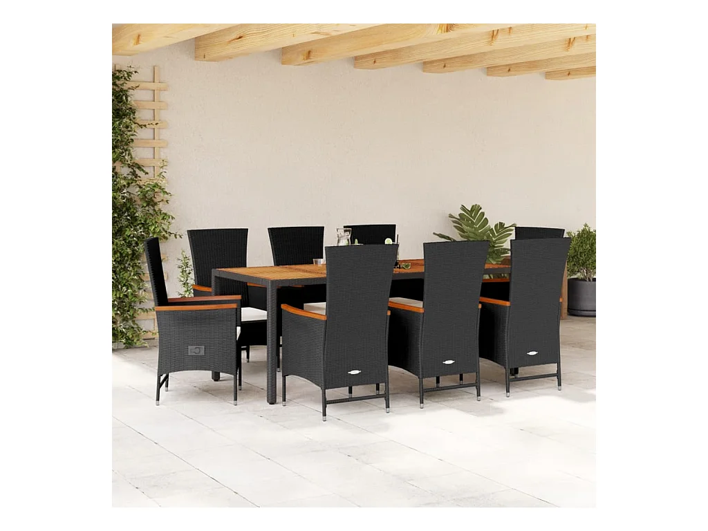 Ensemble à manger de jardin et coussins 9 pièces noir rotin acacia
