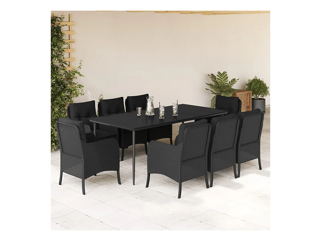 Ensemble à manger de jardin 9 pièces coussins noir résine tressée