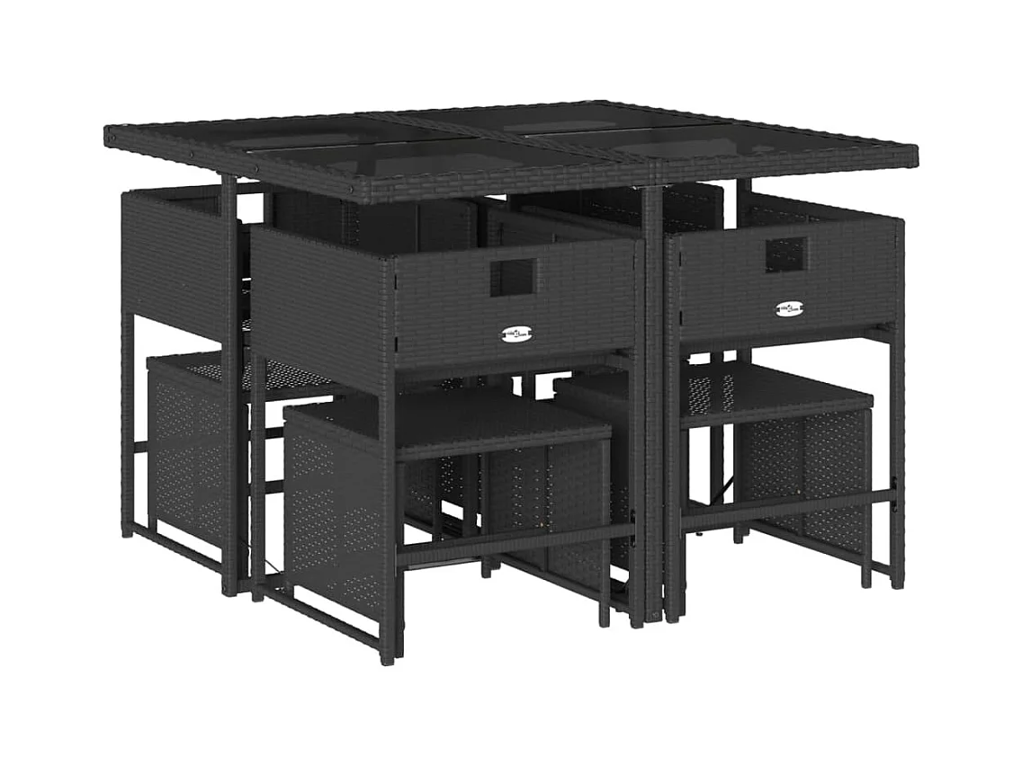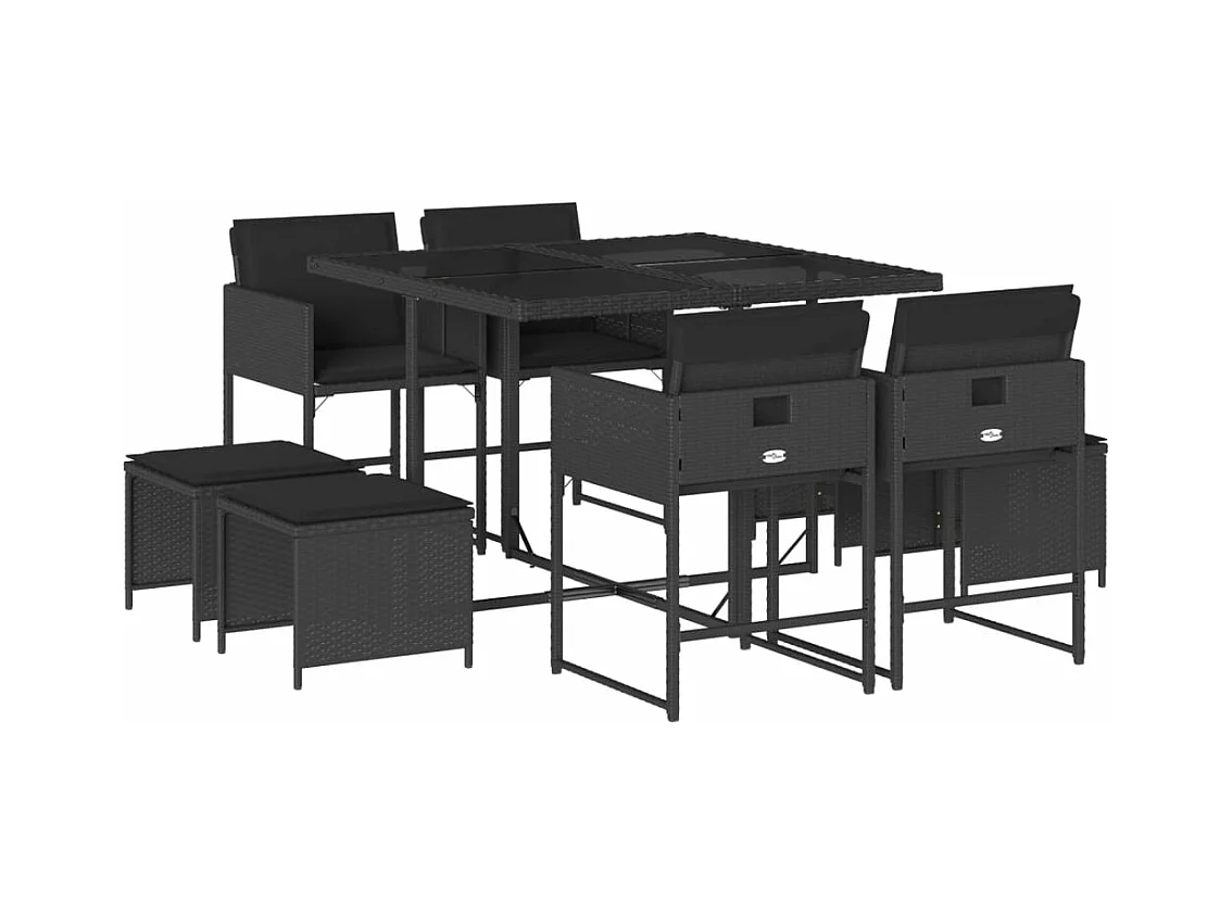 Ensemble à manger de jardin 9 pièces coussins noir résine tressée
