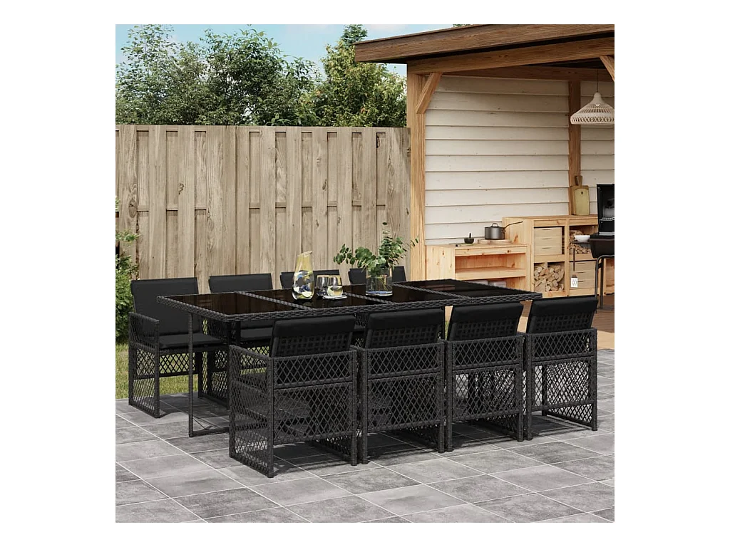 Ensemble à manger de jardin 9 pièces coussins noir résine tressée