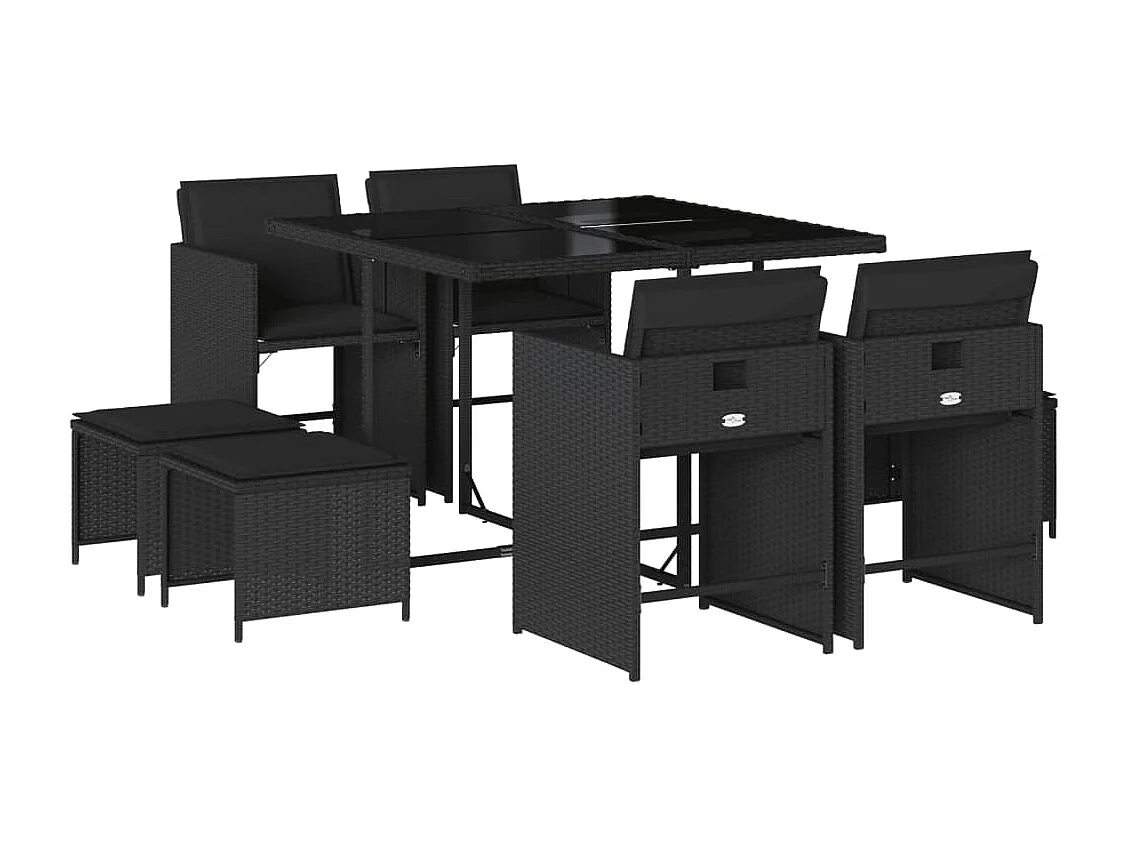 Ensemble à manger de jardin 9 pièces coussins noir résine tressée