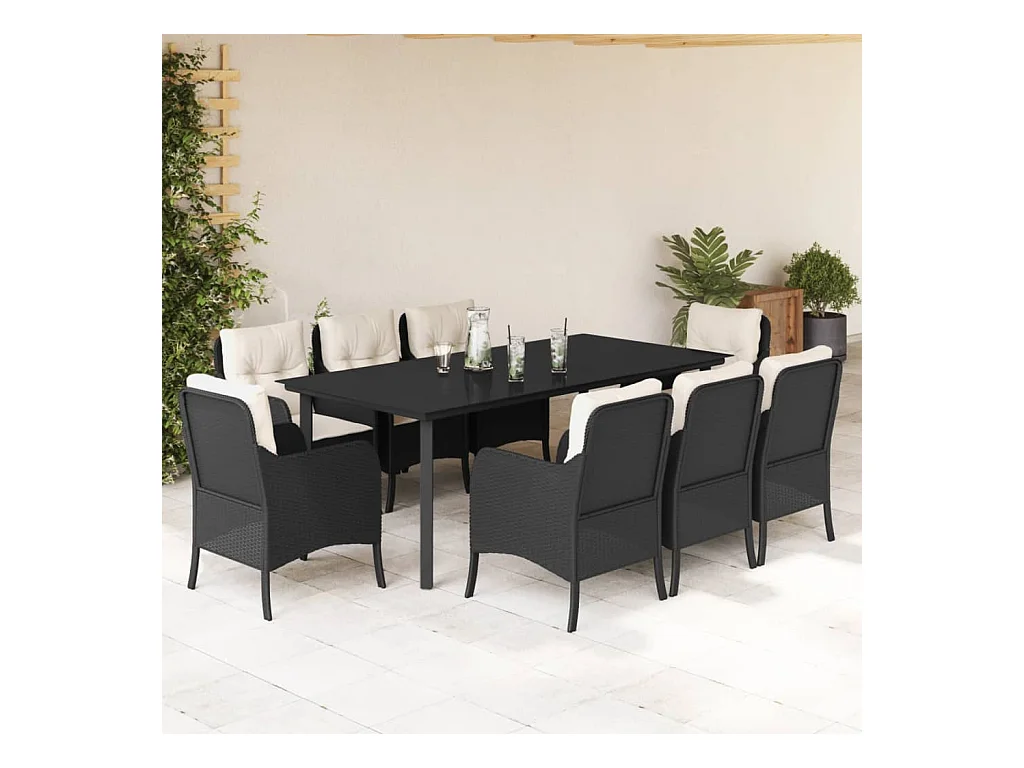 Ensemble à manger de jardin 9 pièces coussins noir résine tressée