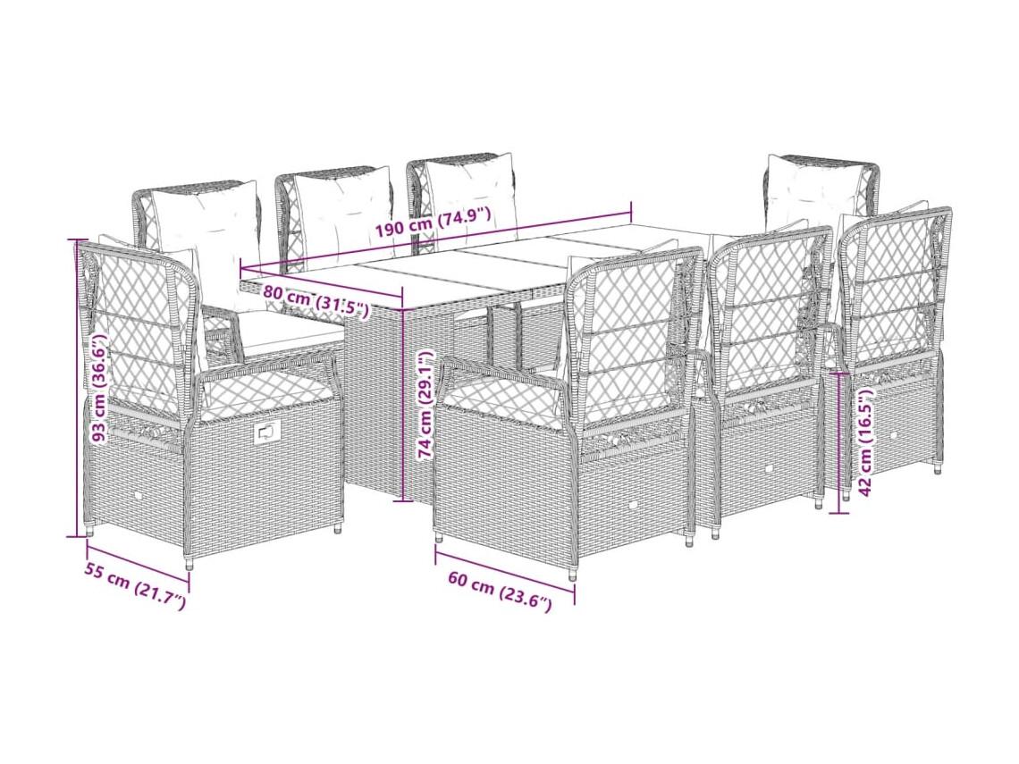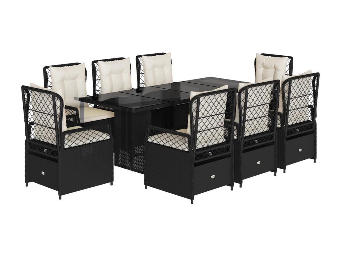 Ensemble à manger de jardin 9 pièces coussins noir résine tressée