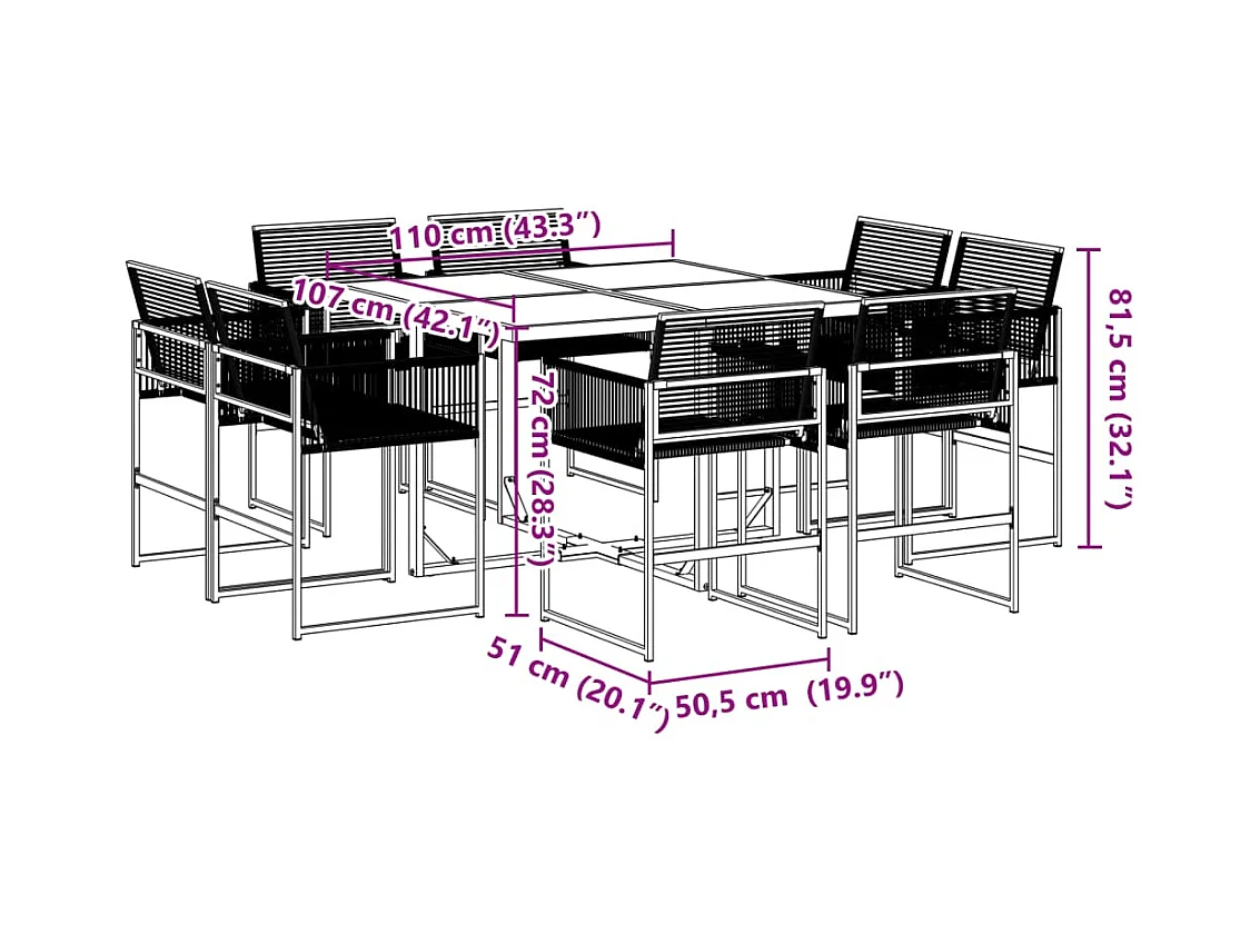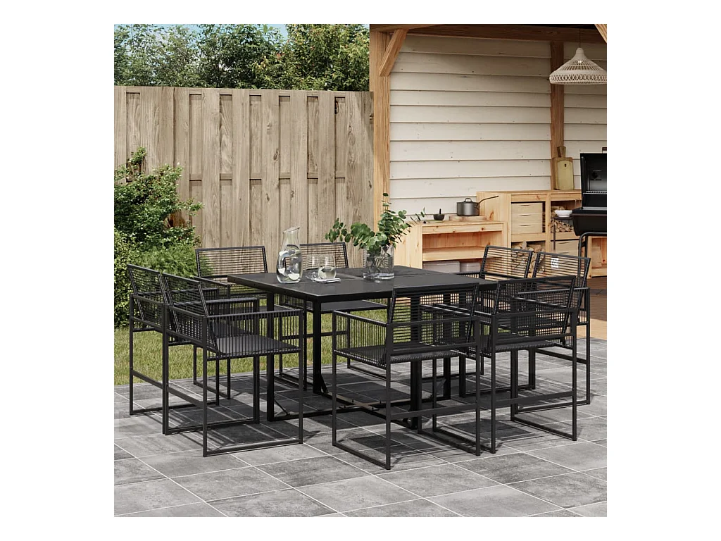 Ensemble à manger de jardin 9 pièces coussins noir résine tressée