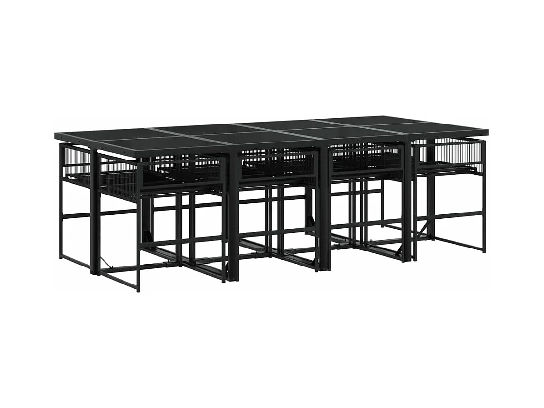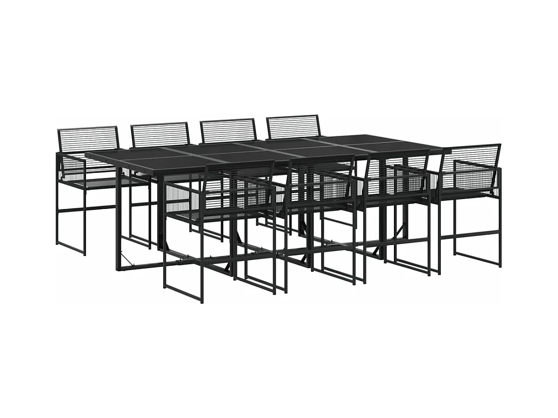 Ensemble à manger de jardin 9 pièces Noir Résine tressée
