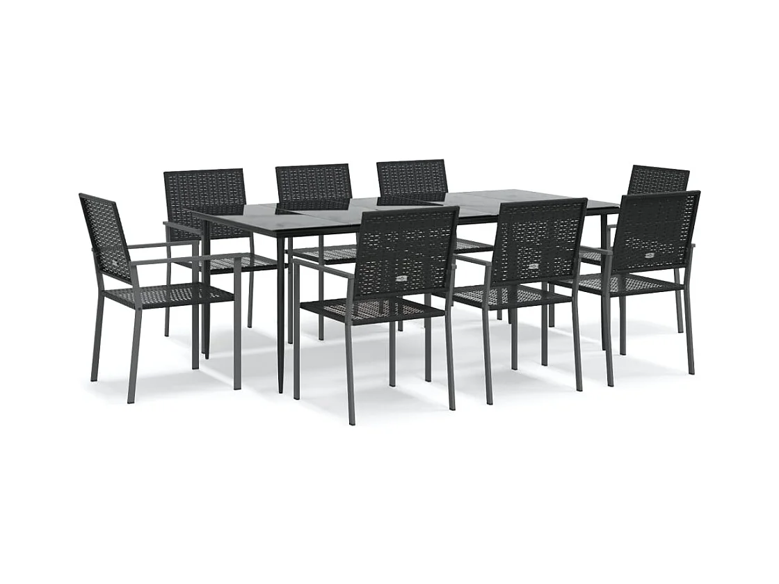 Ensemble à manger de jardin 9 pièces résine tressée acier