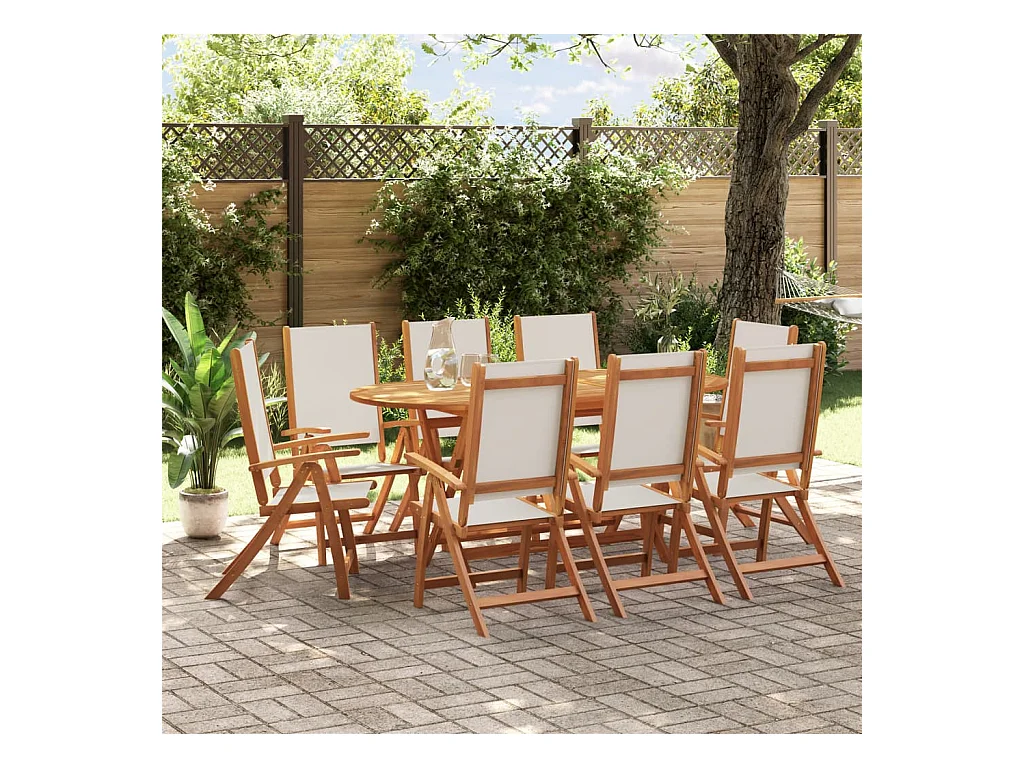 Ensemble à manger de jardin 9pcs bois d'acacia solide textilène