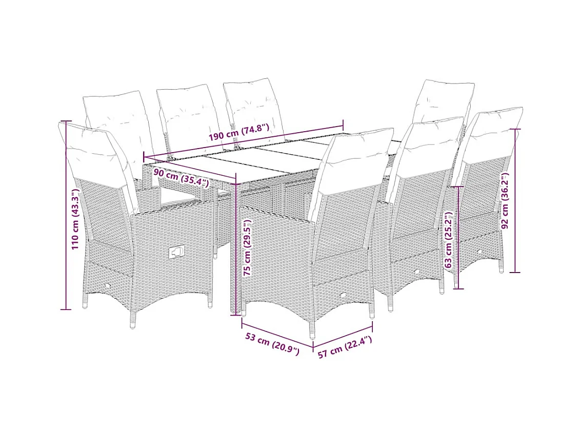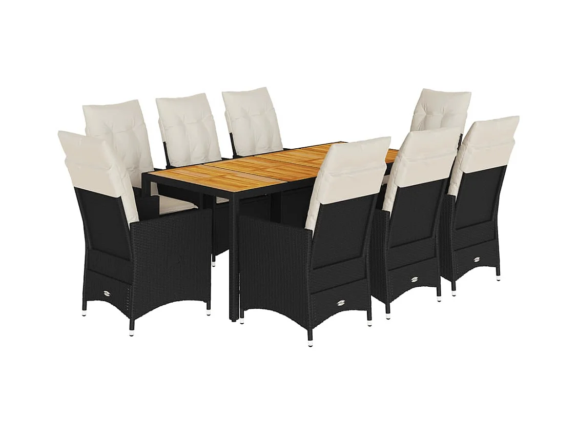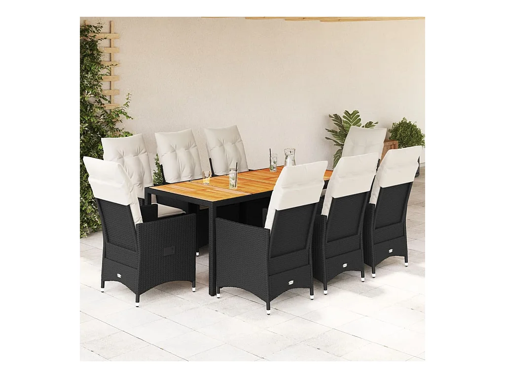 Ensemble à manger de jardin 9pcs coussins noir résine tressée