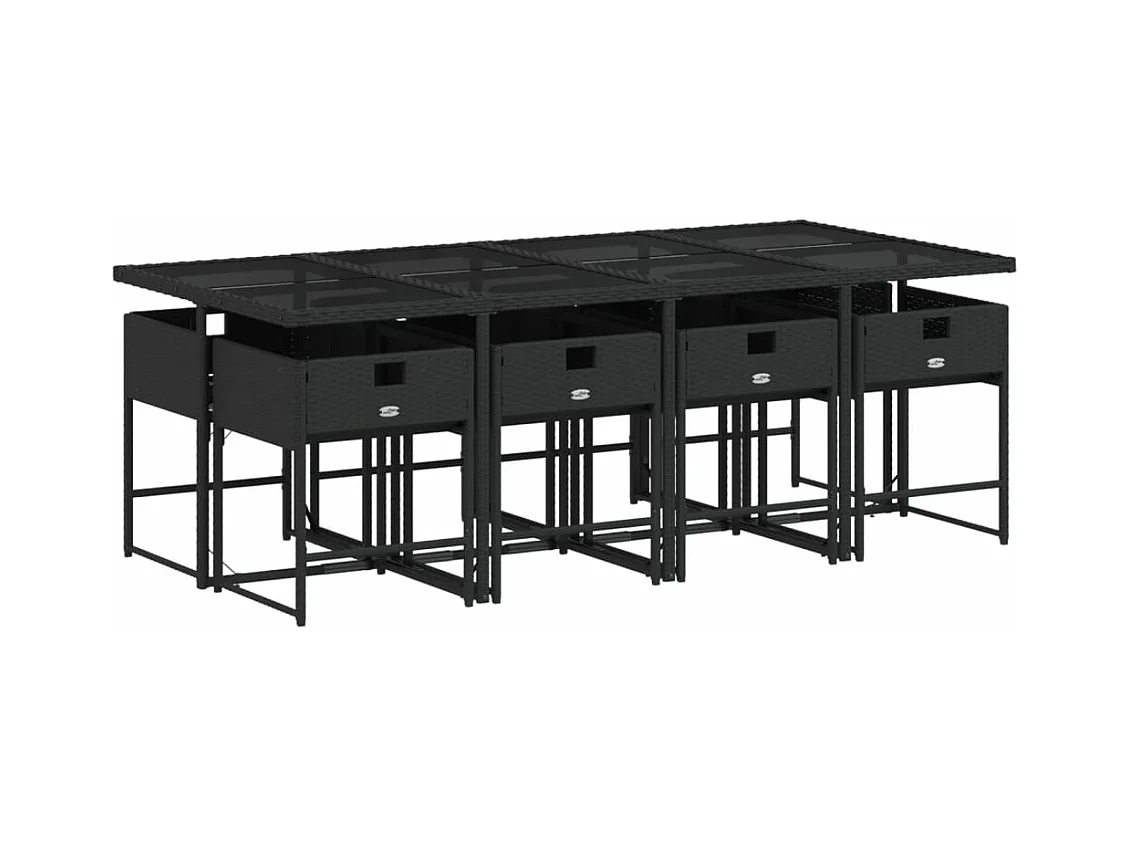 Ensemble à manger de jardin 9pcs coussins noir résine tressée