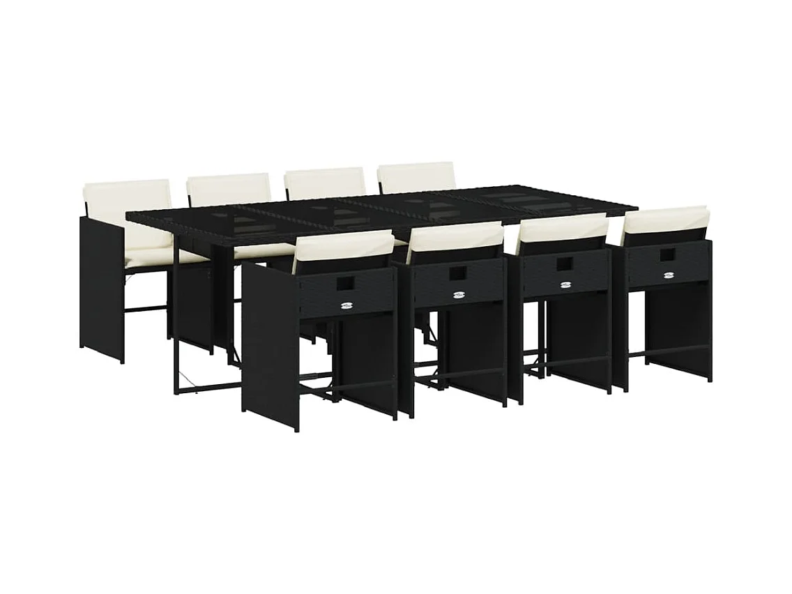 Ensemble à manger de jardin 9pcs coussins noir résine tressée