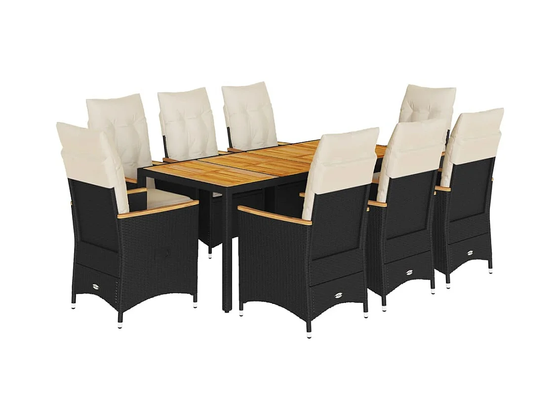 Ensemble à manger de jardin 9pcs coussins noir résine tressée