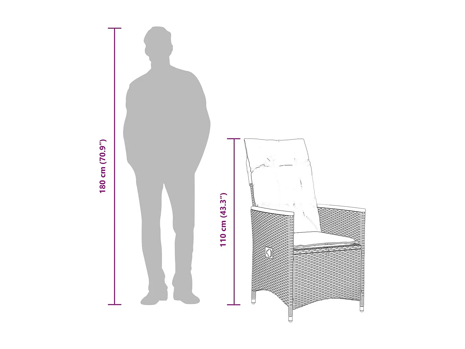 Ensemble à manger de jardin coussins 7pcs Noir Résine tressée