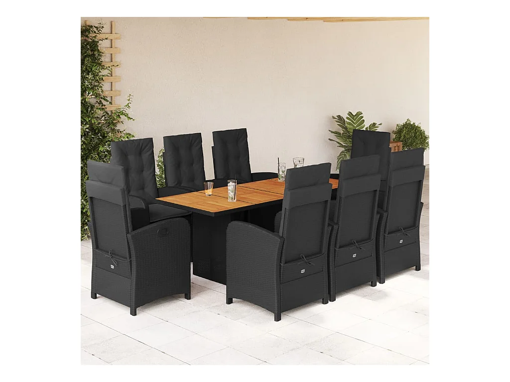 Ensemble à manger de jardin 9pcs coussins noir résine tressée
