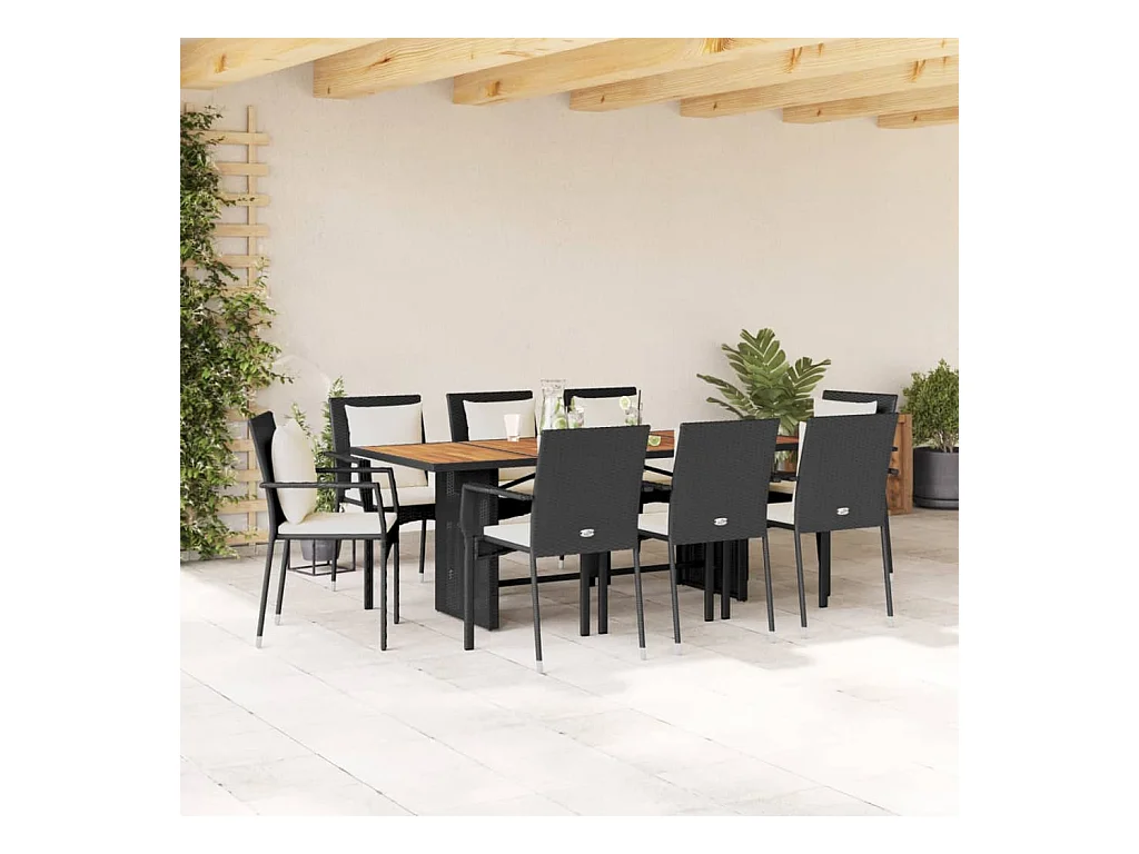 Ensemble à manger de jardin 9pcs coussins noir résine tressée