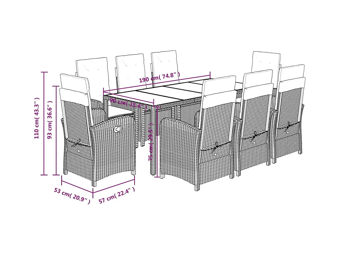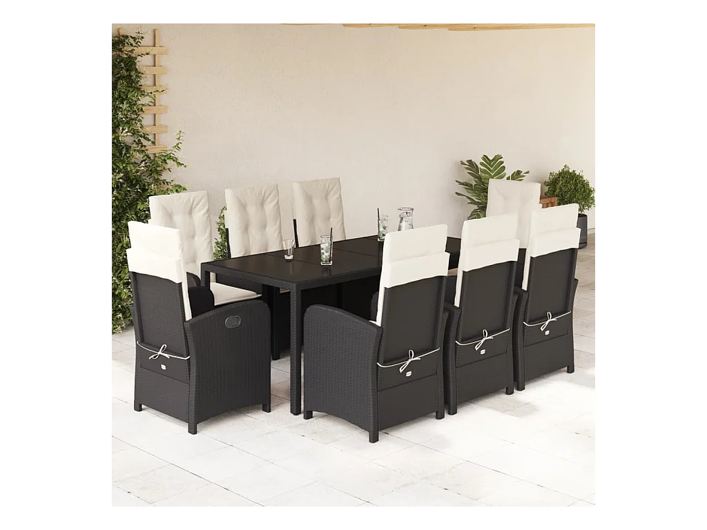 Ensemble à manger de jardin 9pcs coussins noir résine tressée