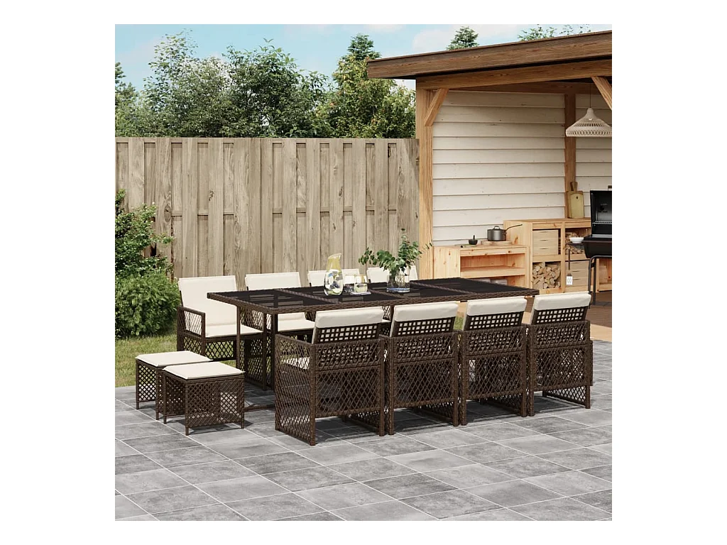 Ensemble à manger de jardin avec coussins 13 pcs marron rotin