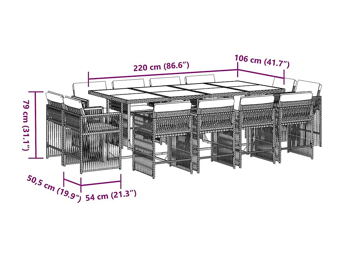 Ensemble à manger de jardin avec coussins 13 pièces marron rotin