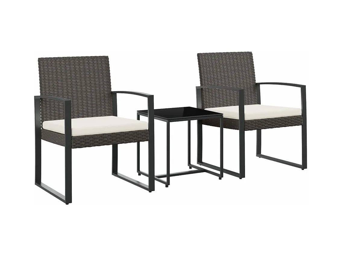 Ensemble à manger de jardin avec coussins 3 pcs marron rotin PP BE45453