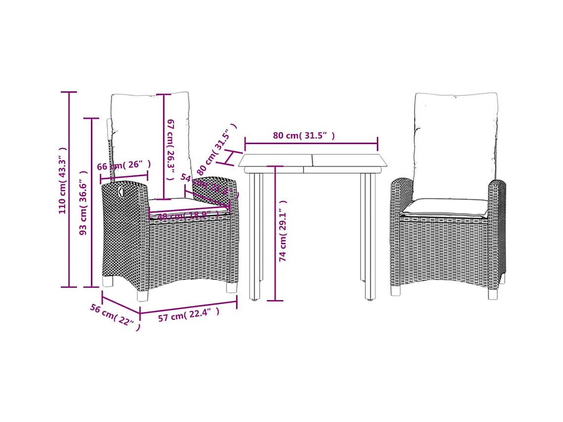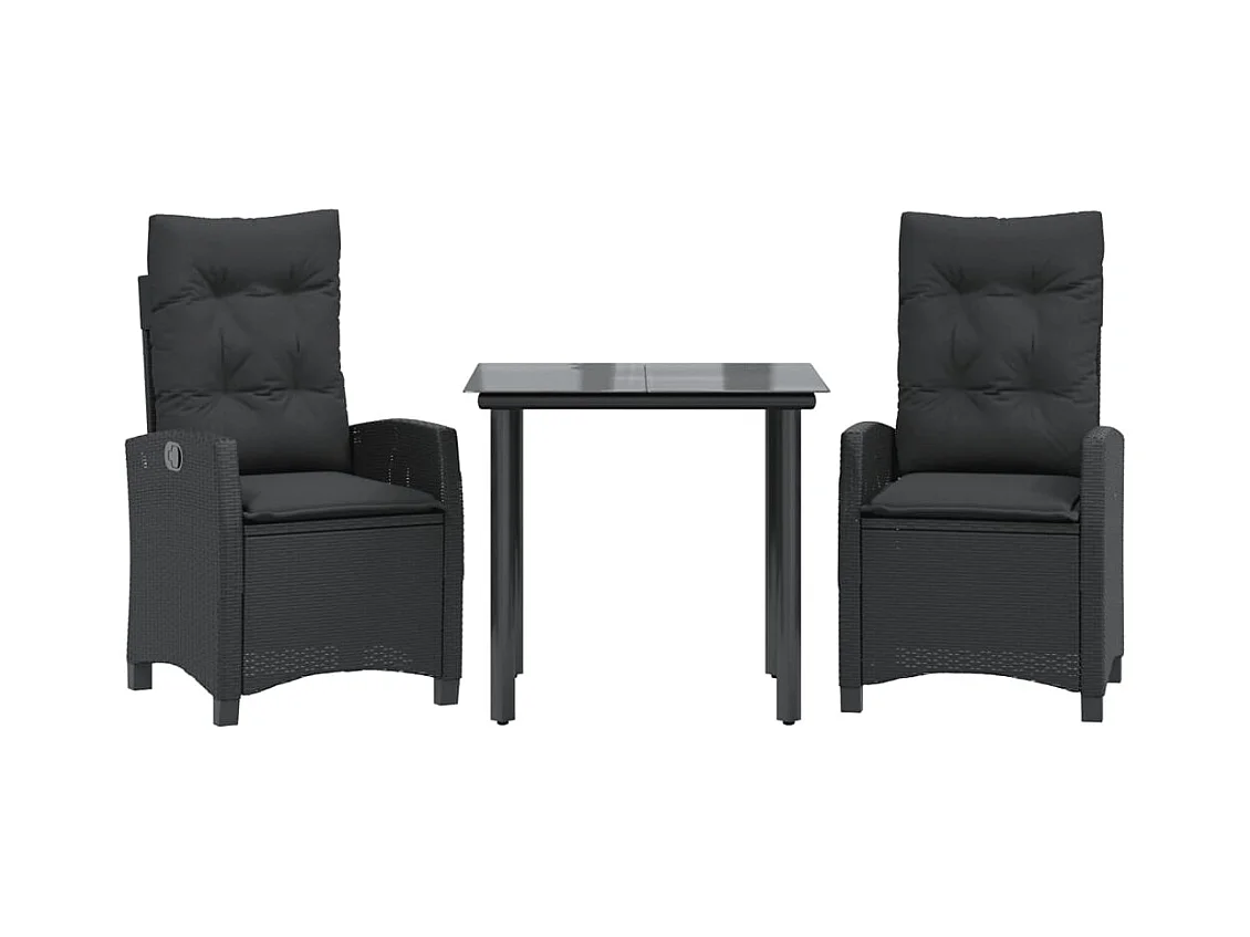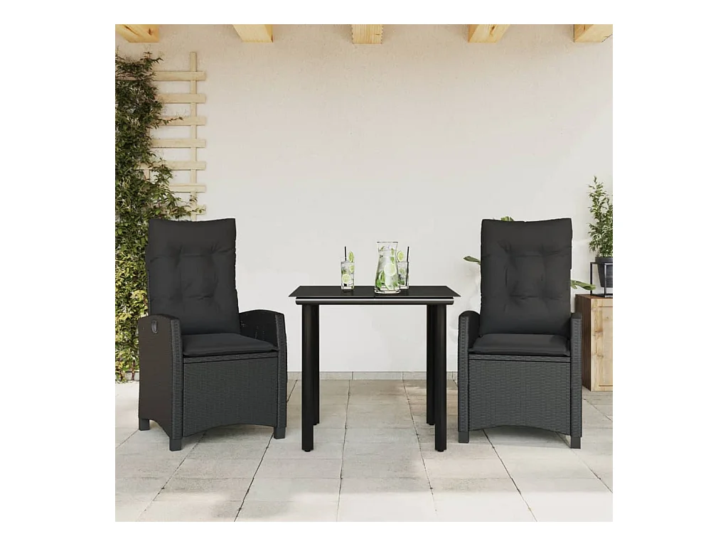 Ensemble à manger de jardin avec coussins 3 pcs Noir